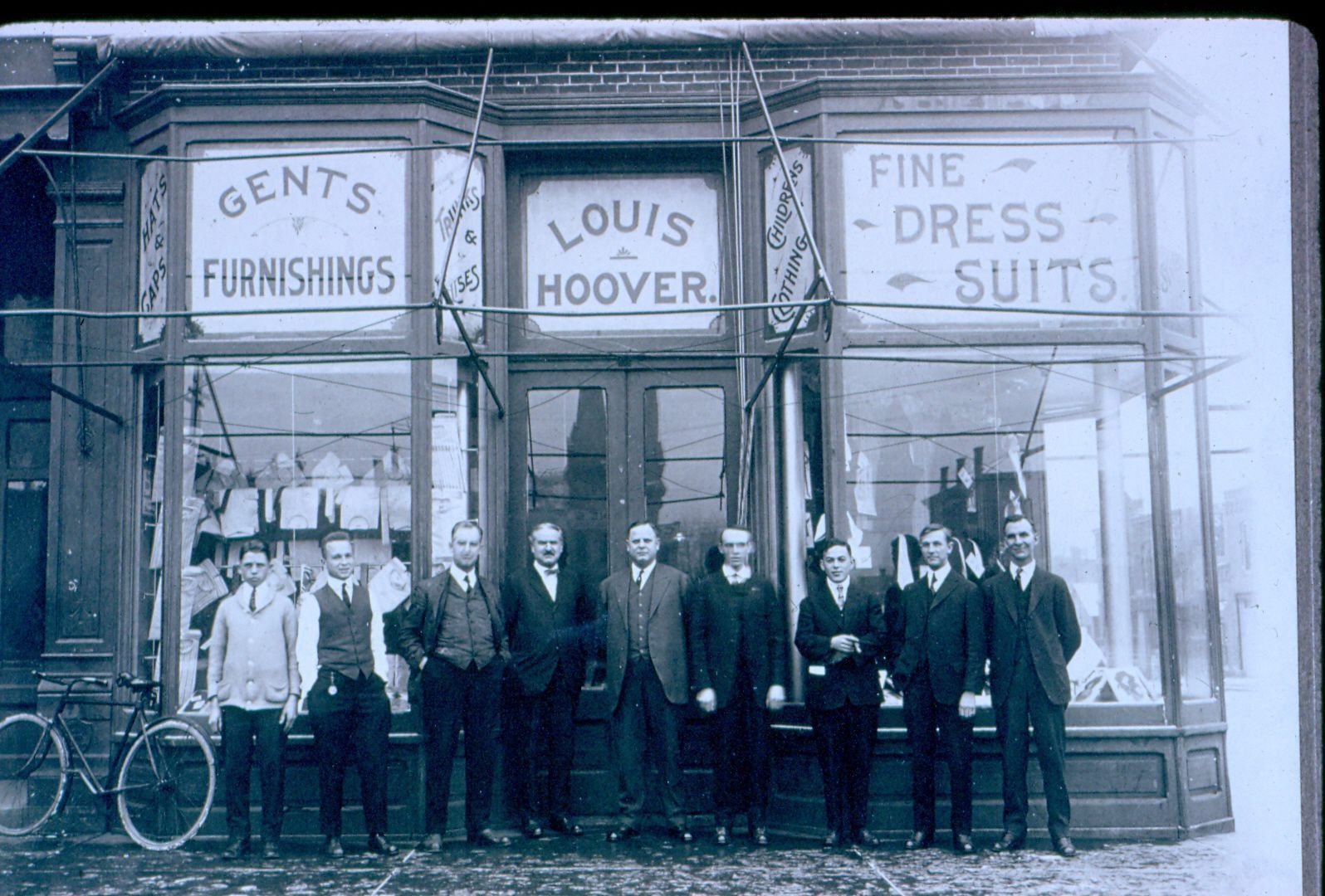 Donation, 07/26/2005. Black and white photographic slide in landscape format. Slide frame is marked: "Public Square Louis Hoover 1910/N.E."Collection