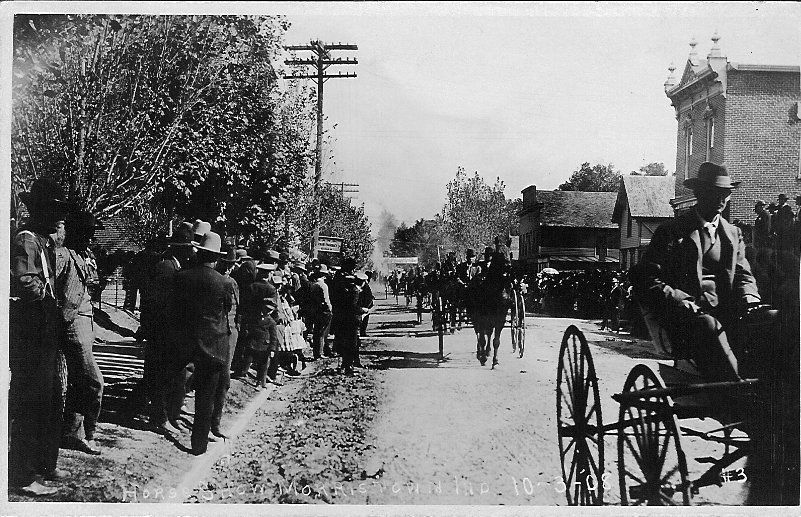 A: Sepia postcard with a photograph of Horse Show Parade in Moirristown, IN, on Main St. (now Hwy 52) Oct. 3, 1908. B: Duplicate of ACollection