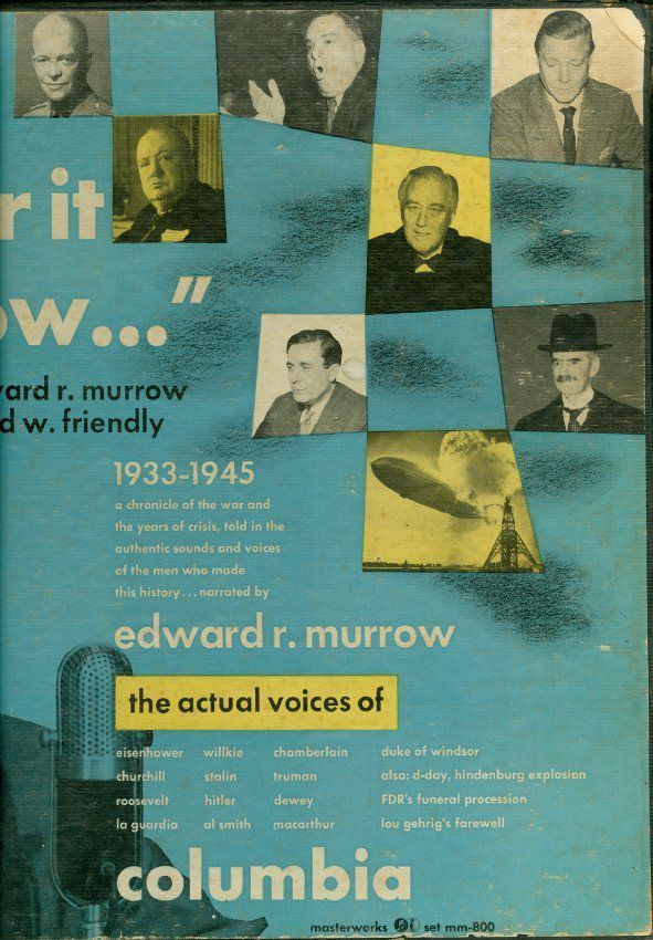 A boxed set of five vinyl phonographic record albums. Produced by Columbia Masterworks, Set MM-800. Title: "I Can Hear It Now," narrated by Edward R. murrow and Fred W. Friendly. Produced by J.G. Guide.