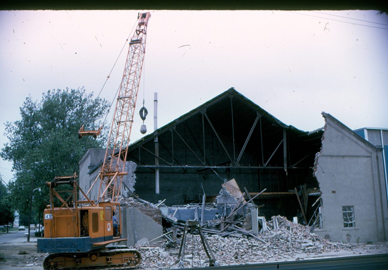 Donation, 07/26/2005. Color photographic slide in landscape format. Frame is marked: "Razing Car/Barn"Collection