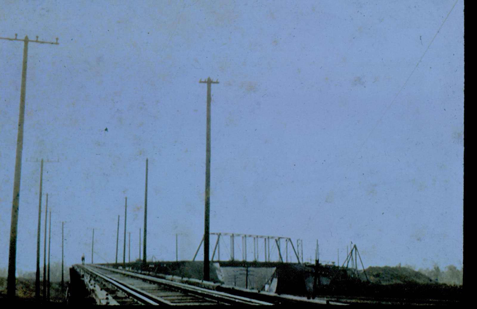 Donation, 07/26/2005. Black and white photographic slide in landscape format. This is a slide of a photograph. "Street car overpass/Fairland 1902."Collection