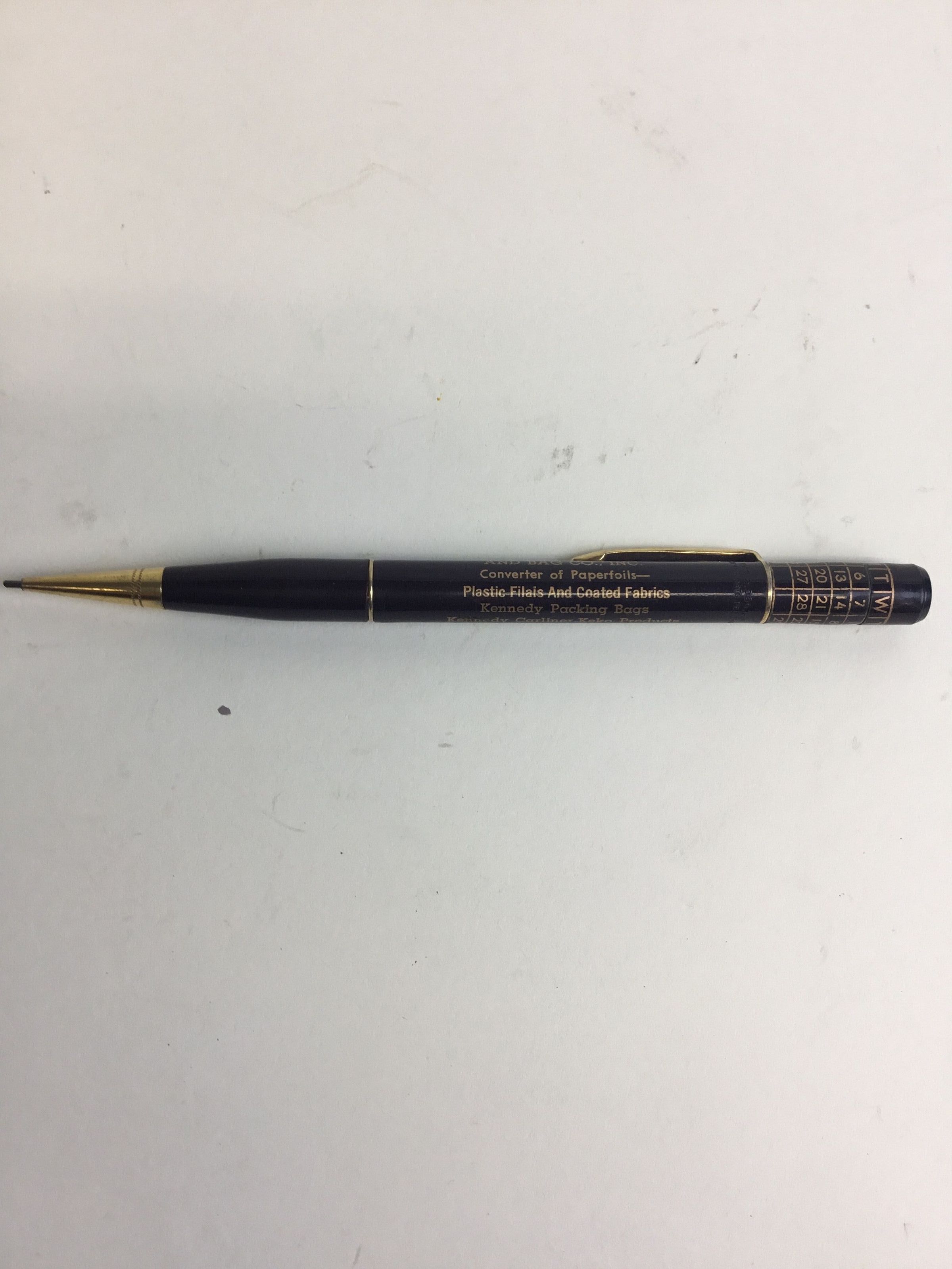 Ritepoint mechanical pencil from Kennedy Carliner and Bag Co, Inc. Pencil also says Converter of Paperfoils-Plastic Filais And Coated Fabrics. Kennedy Packaging Bags