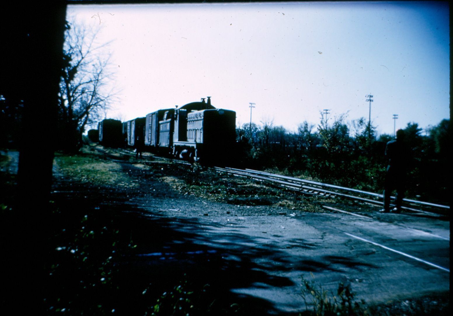 Donation, 07/26/2005. Black and white photographic slide in landscape format. Slide frame is marked: "Last Penn. Train/before sold."Collection