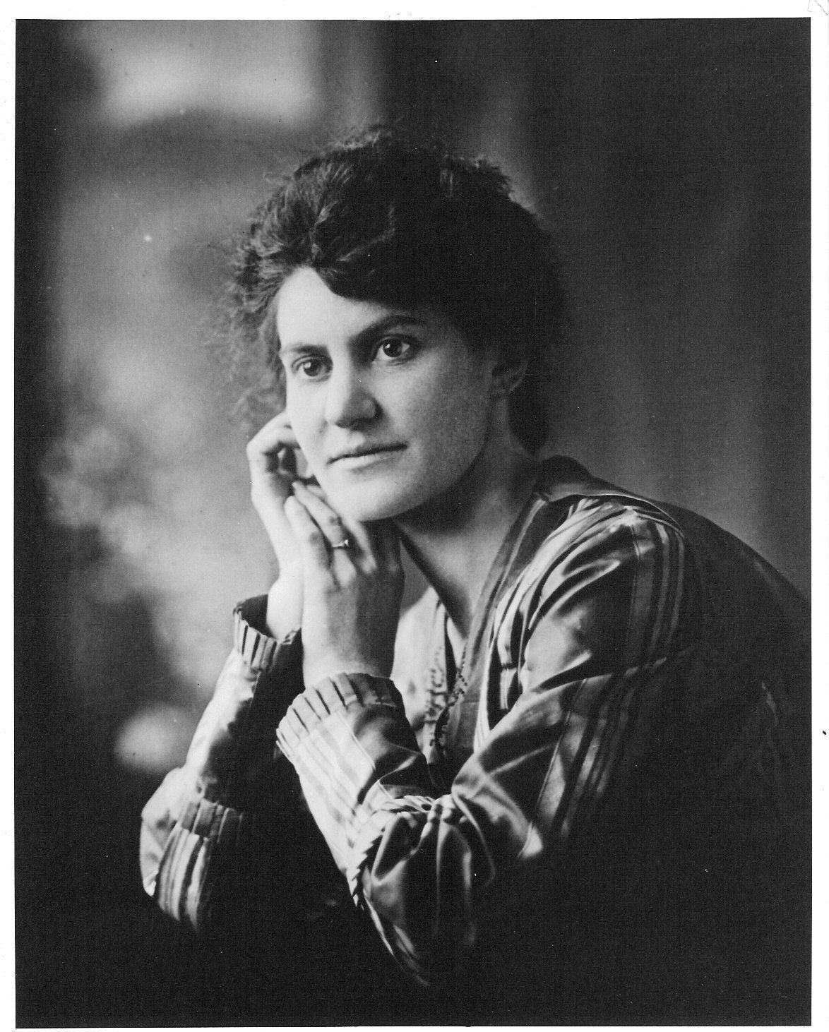 Black and white photographic print in head and shoulder view of LENA FIRN BOOHER, sitting sideways to camera with her head turned almost to the lens, both hands up beside her right cheek, hair is done up on top of her head. Her dress is collarless and of a broad stripe material and there is a ring on her left hand. This print is in a gray paper folder on the back of which is inscribed: "LENA FIRN BOOHER 1917" Front cover of paper folder is printed in red and reads: "The Northland Studios Chicago Detroit Cleveland Pittsburgh Indianapolis Cincinnati Toldeo Columbus"Photograph Details