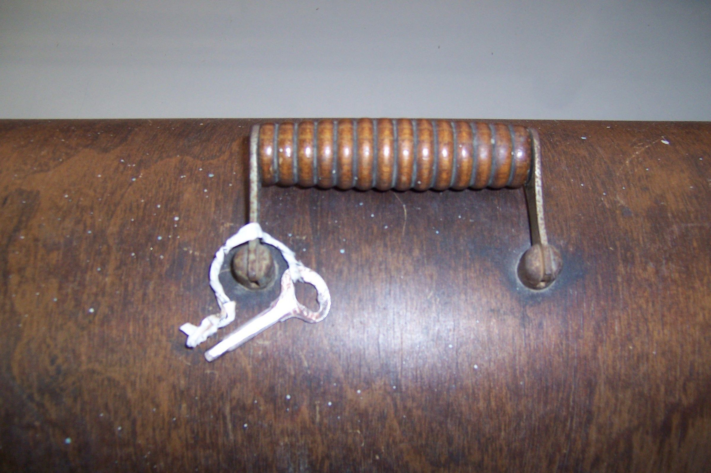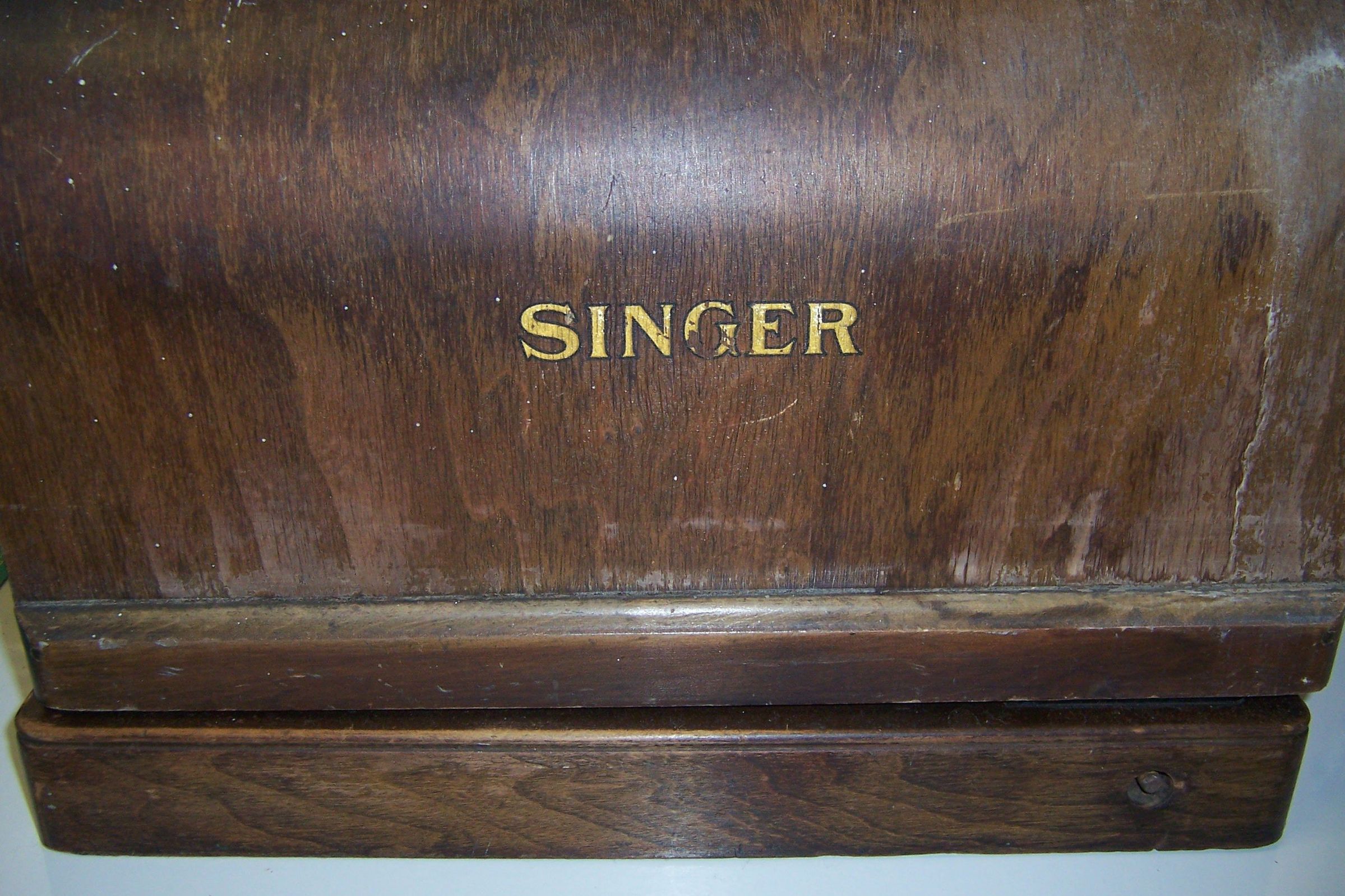 Domed lid for Singer sewing machine, serial # 2291789. Brand name SINGER is on the side of the lid, gold-tone letter, letter partially worn off.Collection