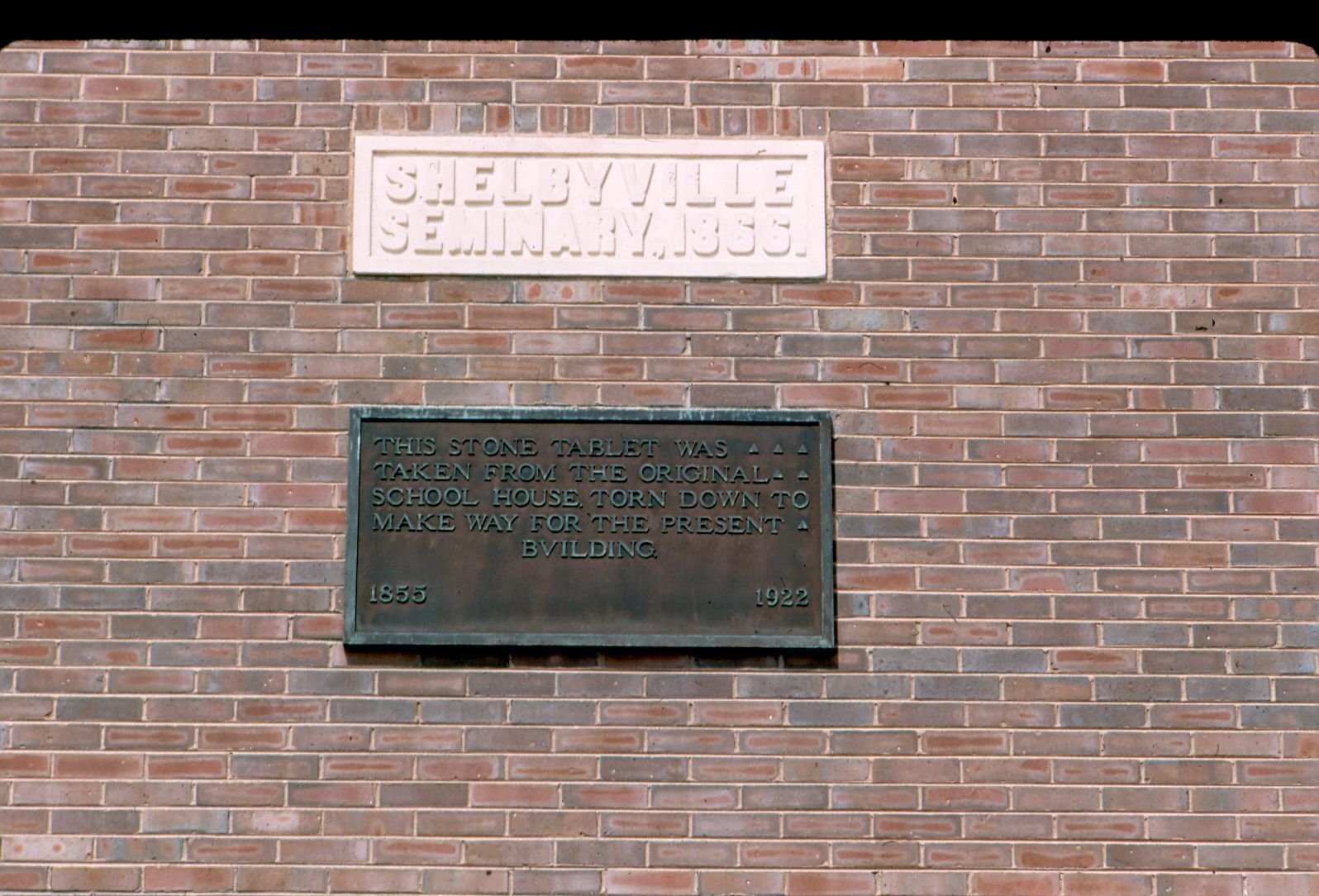 Donation, 07/26/2005. Color photographic slide in landscape format. Slide frame is marked: "Chas. Major School/plaque/Built 1922/Add. 1949."Collection