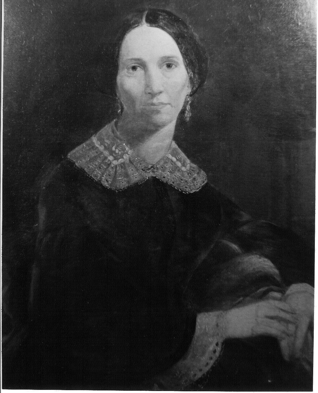 Black and white glossy photographic print in portrait fromat. This is a copy of the original oil on canvas portrait of Phoebe Gaskill Major, c.1865, accession number 1986.001.388. Phoebe Major was the wife of Stephen Major and the mother of Charles Major and Edward Major, Shelbyville, Indiana. The photographer, Gary Henry, was a former curator of Grover Museum.Collection