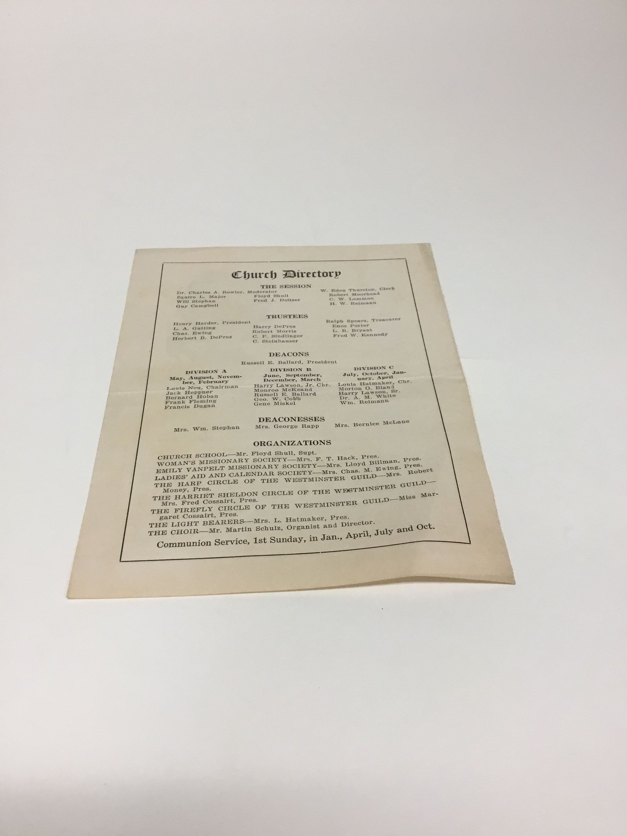 D. Church directory, possibly in 1930’s for 1st Presbyterian.