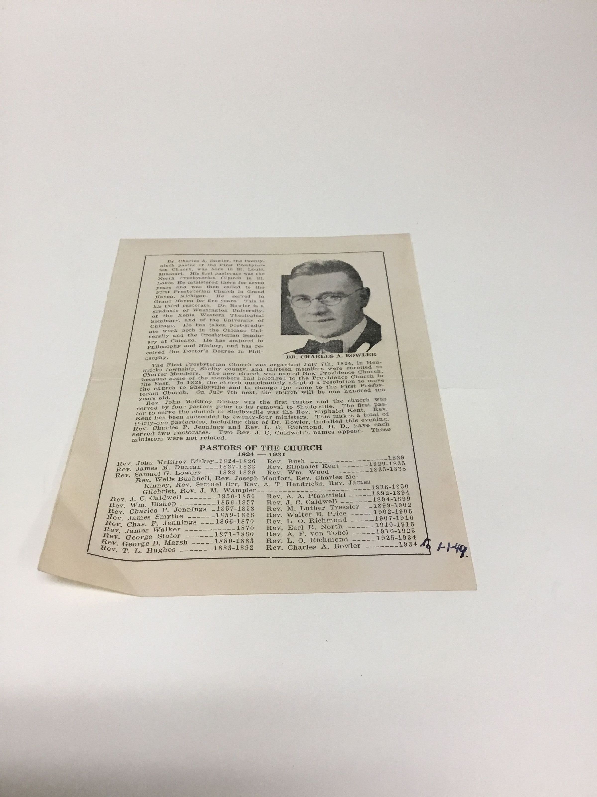 F. First Presbyterian centennial bookletCollection