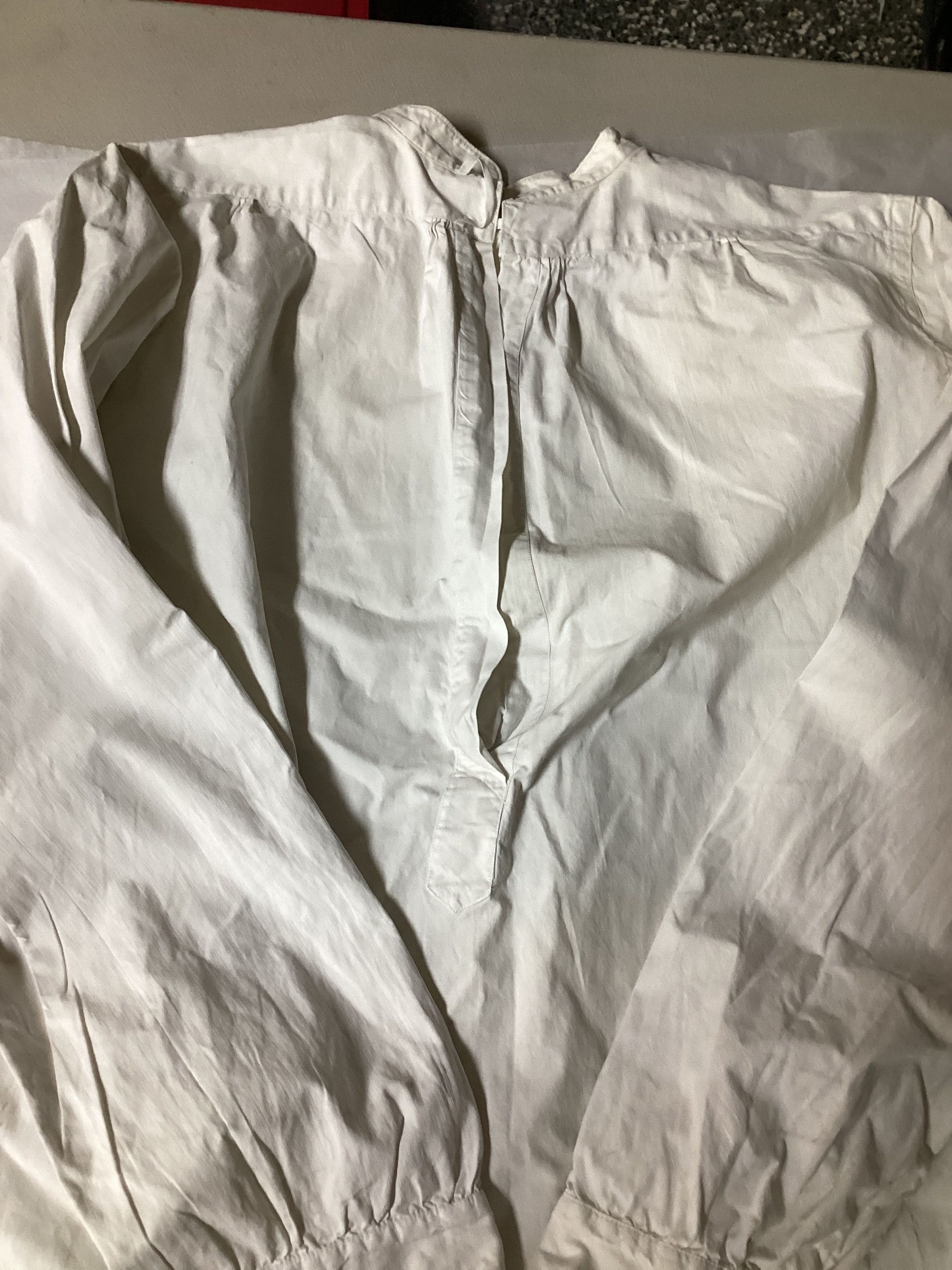 Men’s white collarless shirt. Heavy cotton, no buttons.