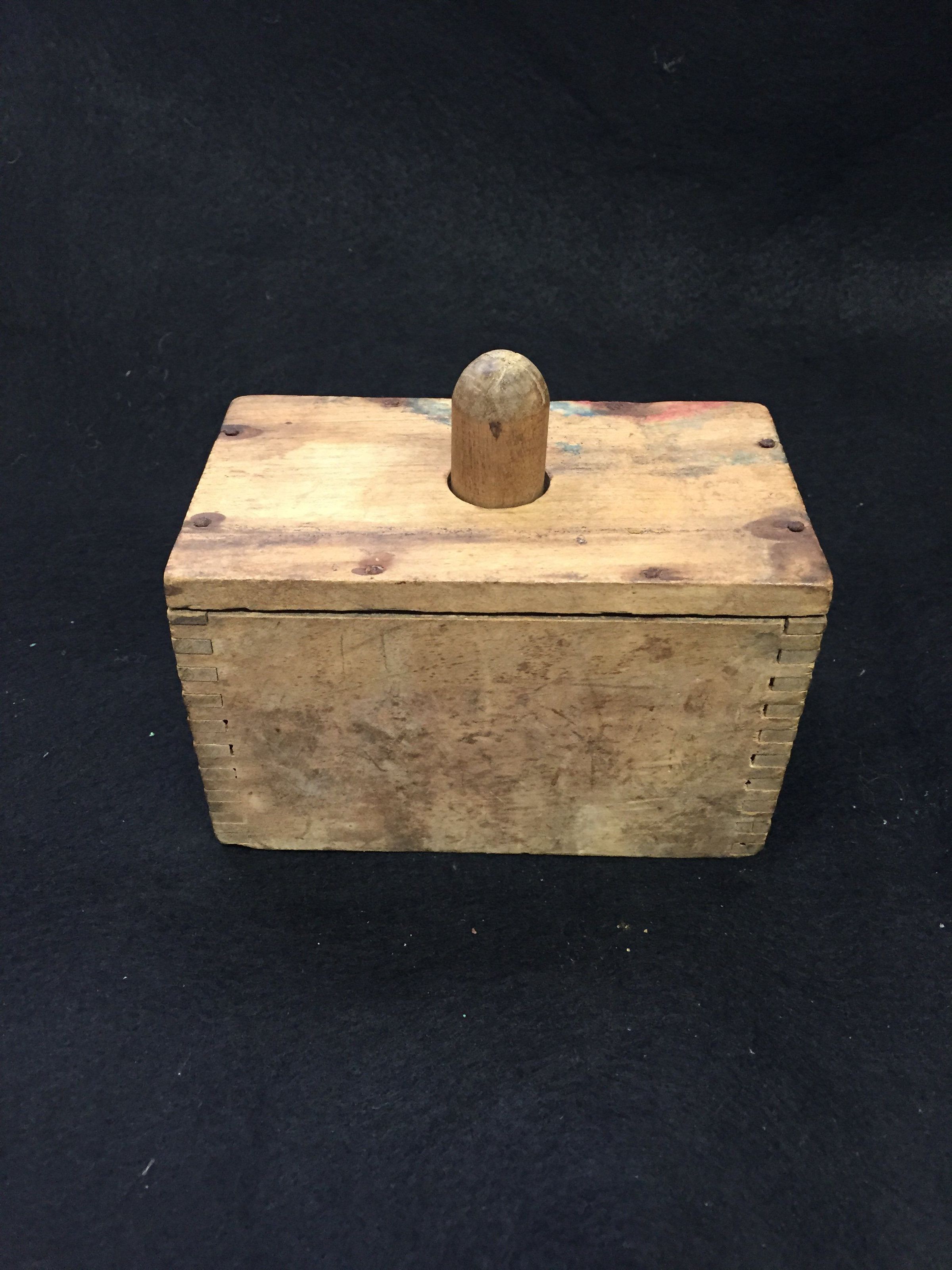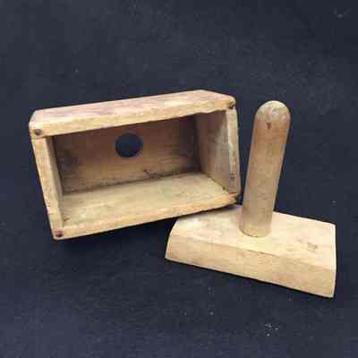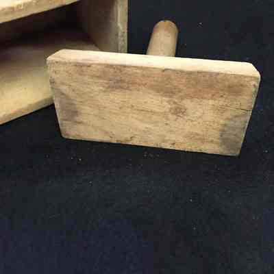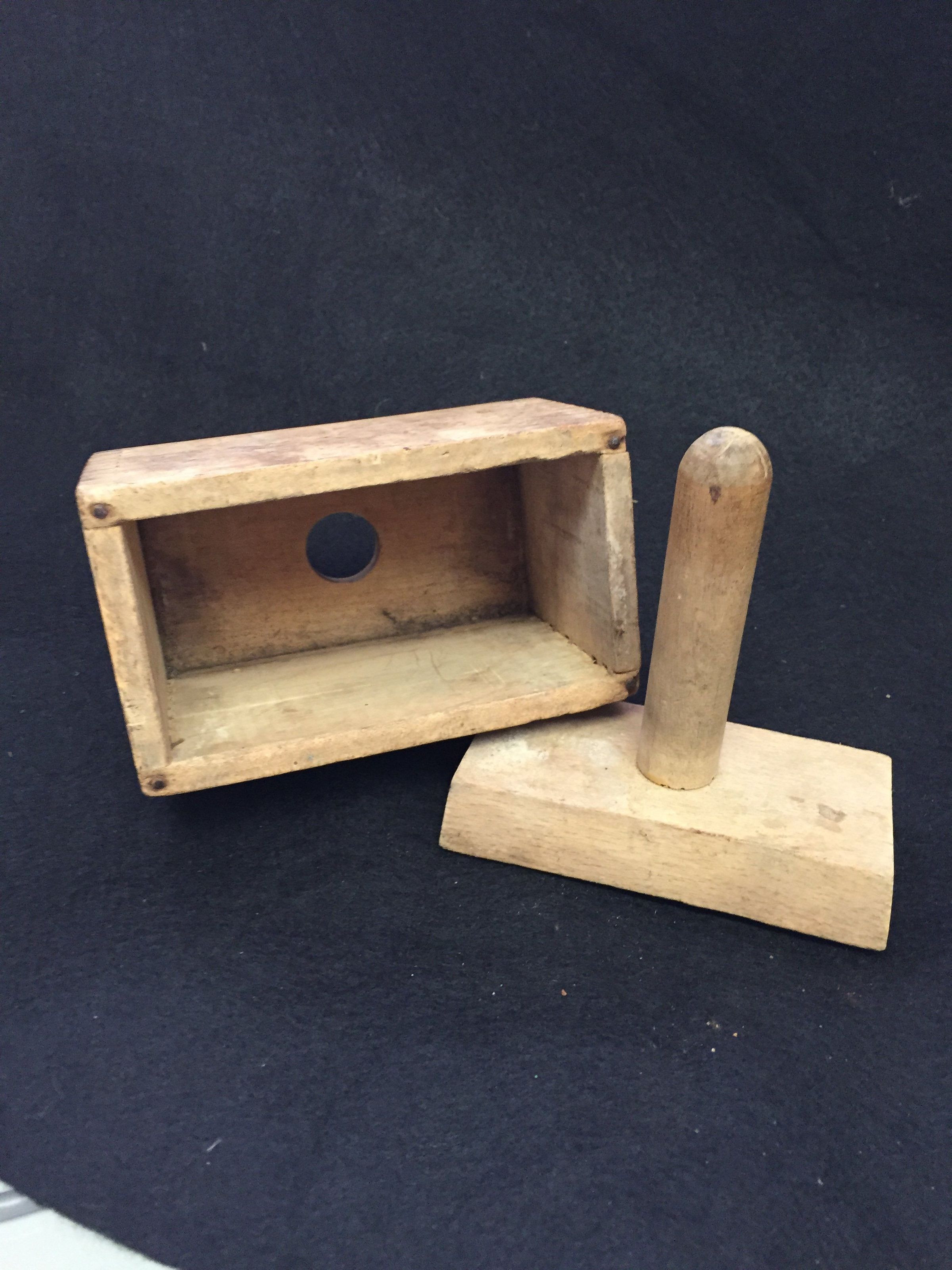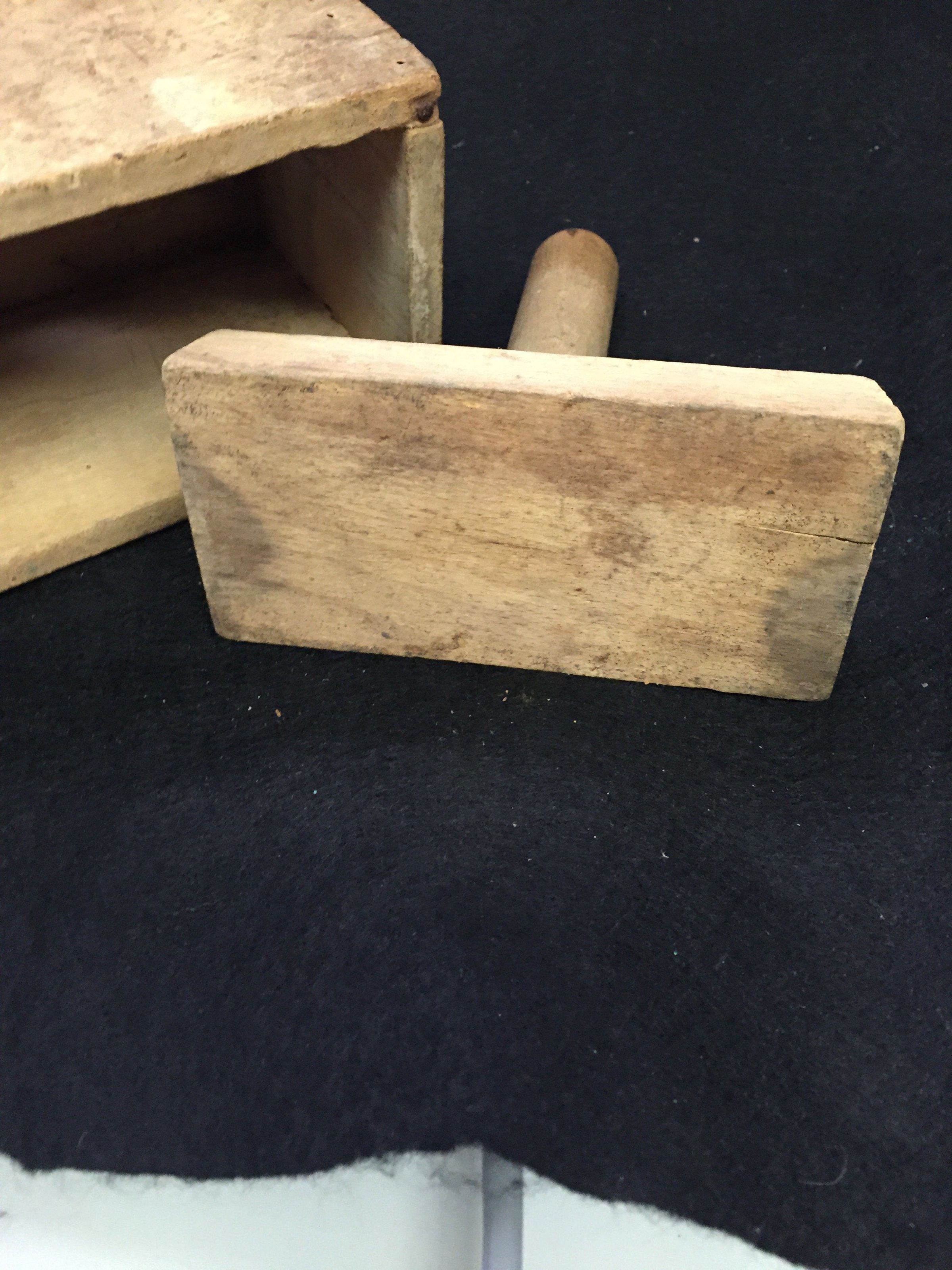 B: Plunger is a rectangle, simple round-end plunger, no design. Minor cracks on each end of plunger.Collection