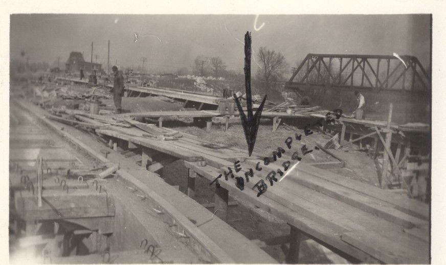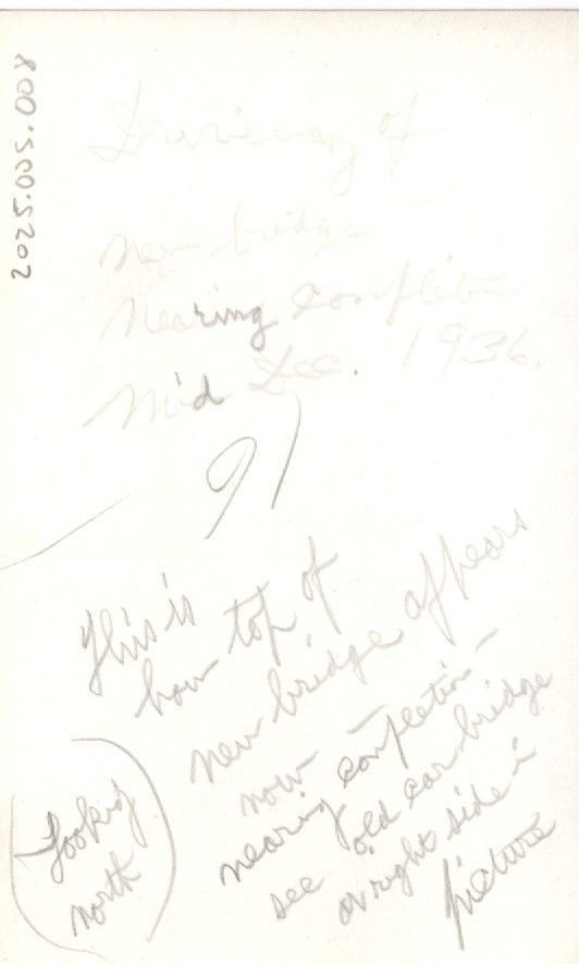 Back: Driveway of new bridge - nearing completion mid Dec. 1936.