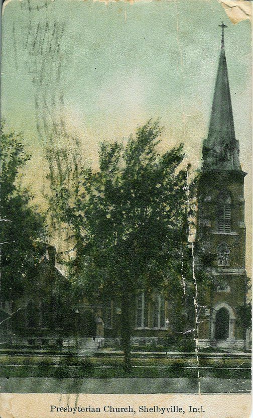 Postcard of Presbyterian Church, Shelbyville, IN. Donation, 1994. Used by Grace Reinhart, 1922.Collection