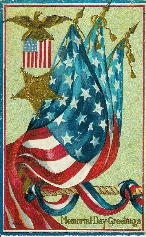 D: Memorial Day Greeting with red/wh/blue ribbon, gold eagle, American flag, gold starCollection