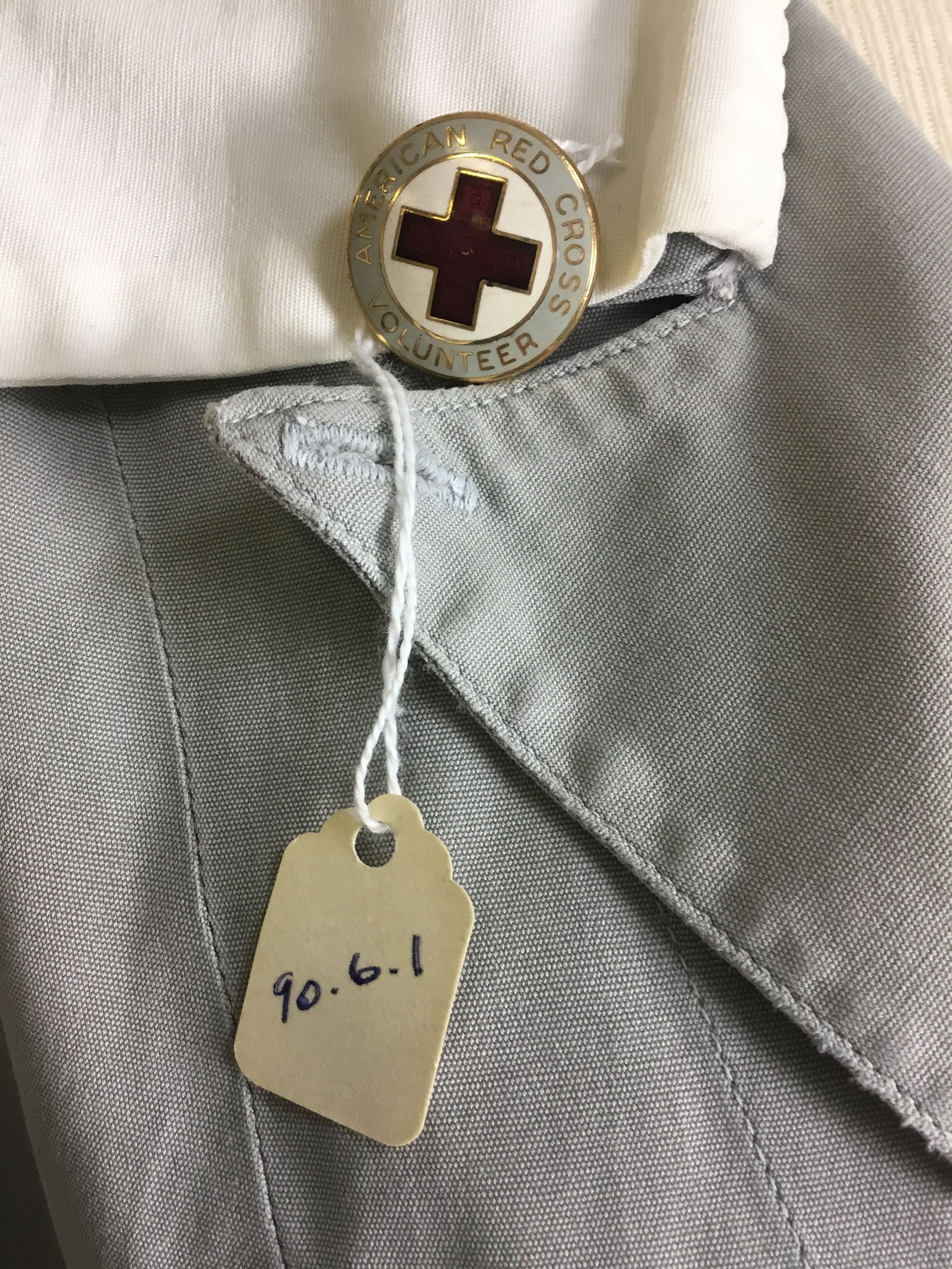 The pin on right collar says American Red Cross Volunteer accession number 1990.006.001.Collection