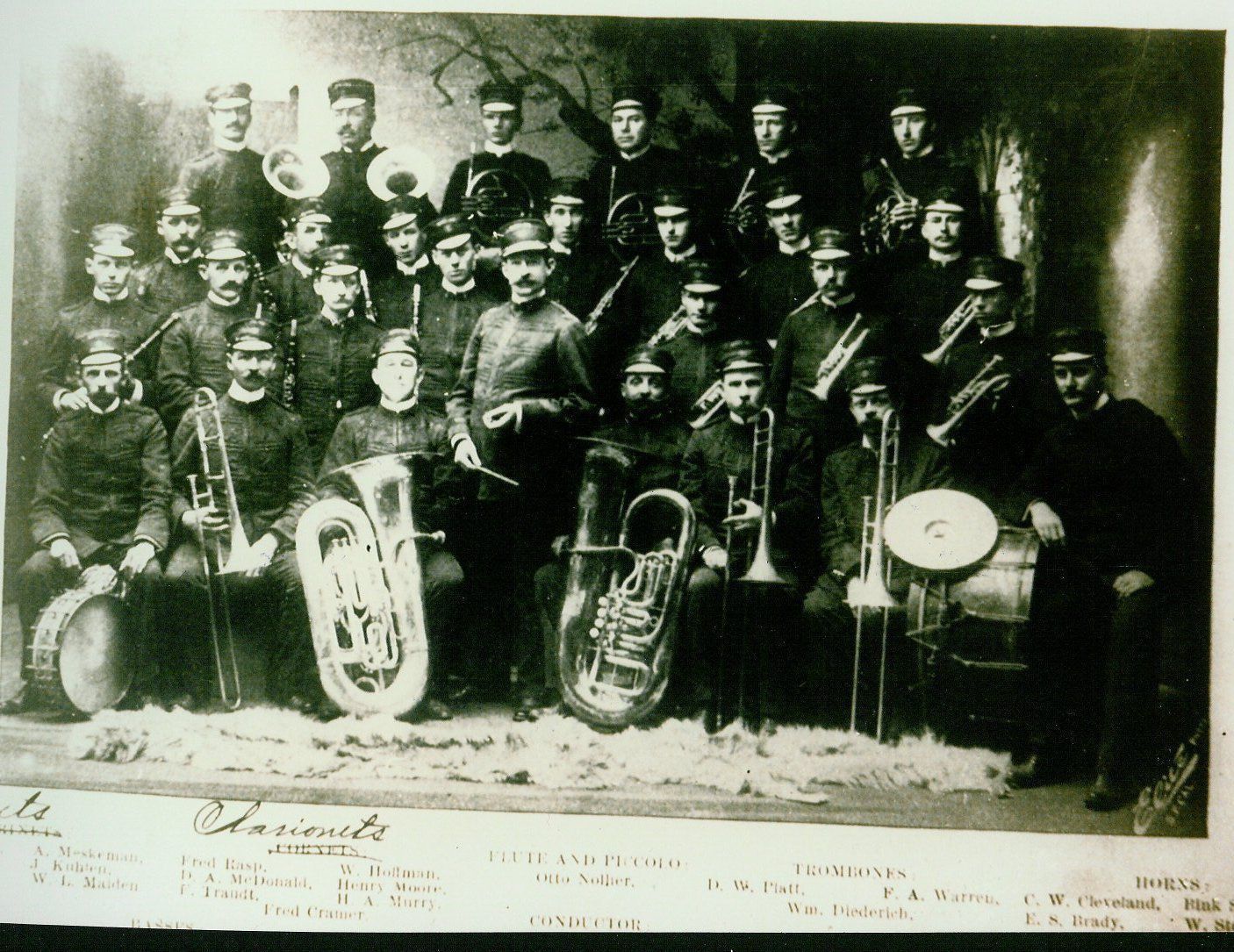 Written on back of photo: "#51-Ringling Bros. Circus Band 1900/2nd row, 2nd from left--Fred Rasp" Donation, 09/1992.Collection