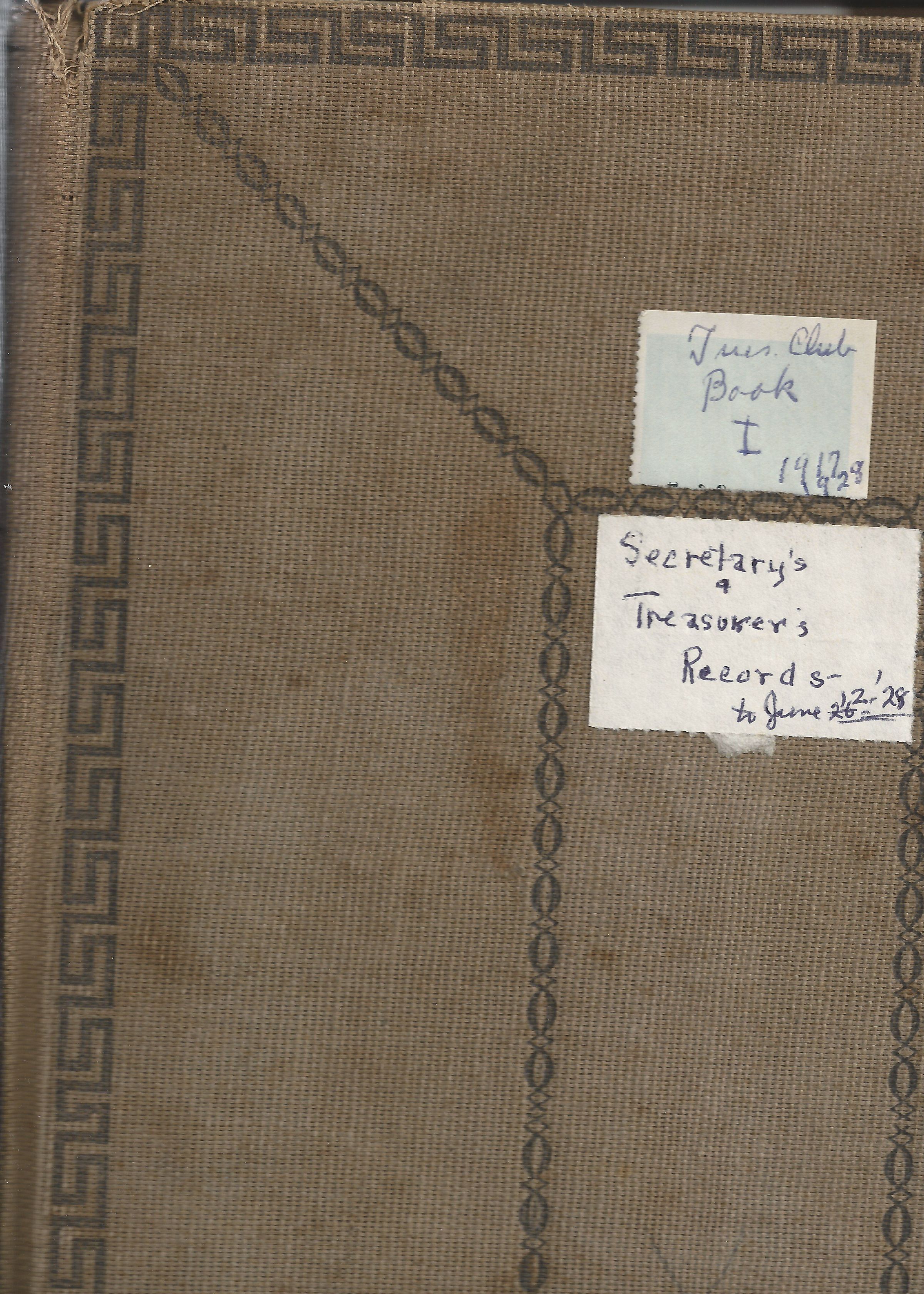 A record/journal of the Fountaintown Tuesday Club, starting with the entry date of December 11, 1917 through June 12, 1928. Title of front cover indicates this journal is the 1st of the clubs' record-keeping, indicated with title: Tuesday Club/Book I/1917-1928 . Book contains a miscellaney of information: member names and dues paid, minutes of meetings, etc.
