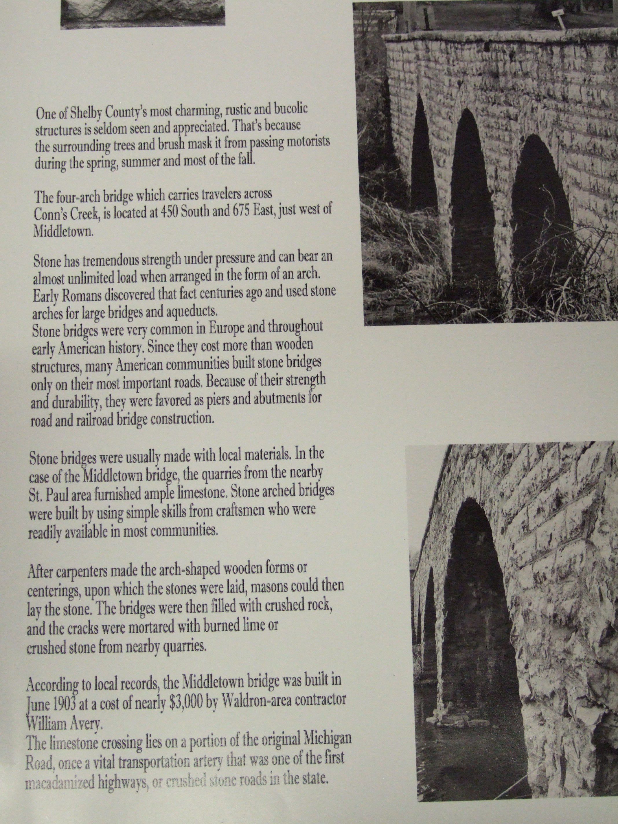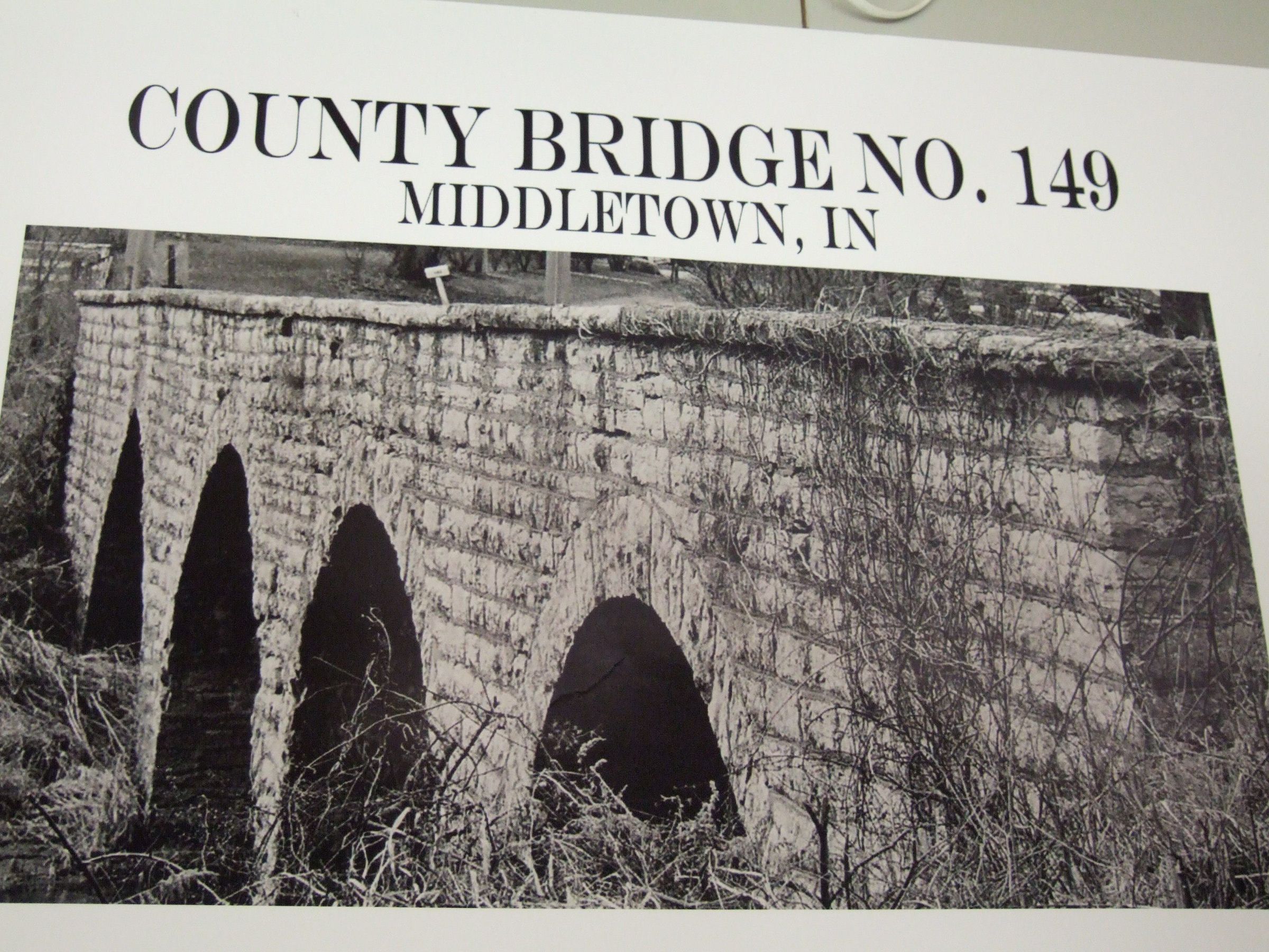 Poster-size sepia-tone print ; 6 assorted sizes and views of Shelby County Bridge No. 149, gives a brief history of the historic landmark bridge, located in Middletown, INCollection