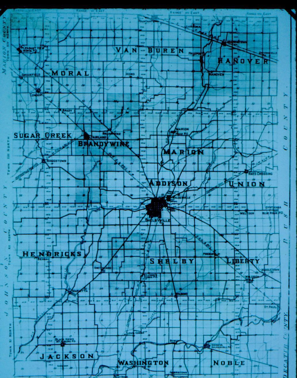Black and white photographic slide in portrait format. Slide frame is marked: "Old map Shelby Co./1900's."Collection