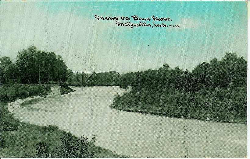 F: Scene on Blue River, Shelbyville, IN, w/ iron bridge