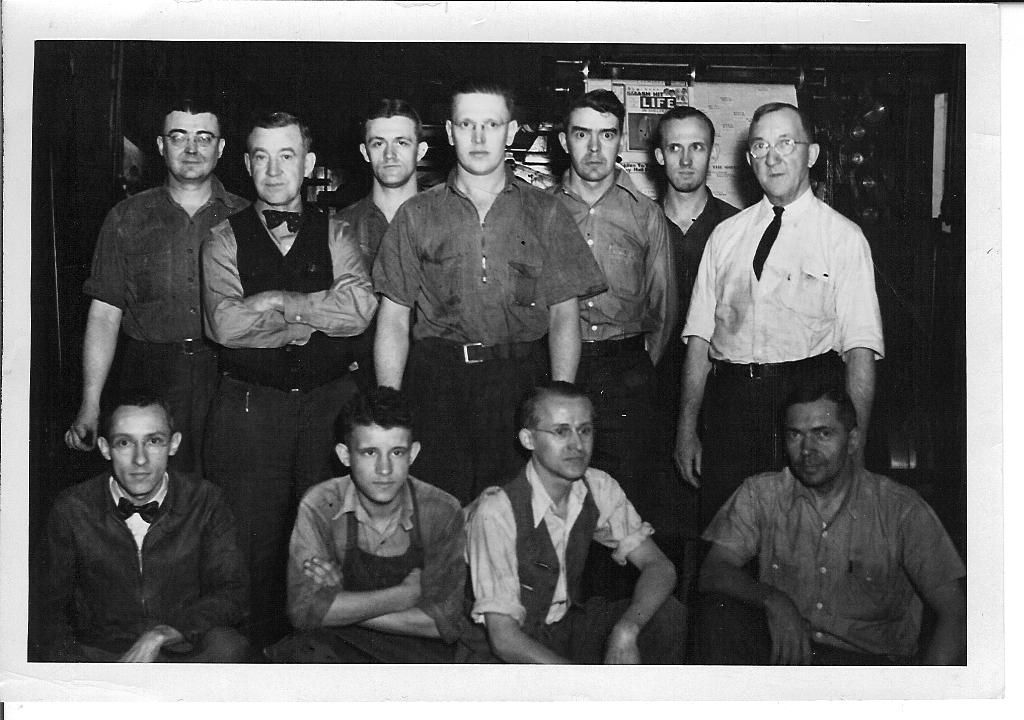 donation, 10/2002. Used pre-1946. Photo of workers at Shelbyville Democrat. Standing 4th from William Goebel.Collection