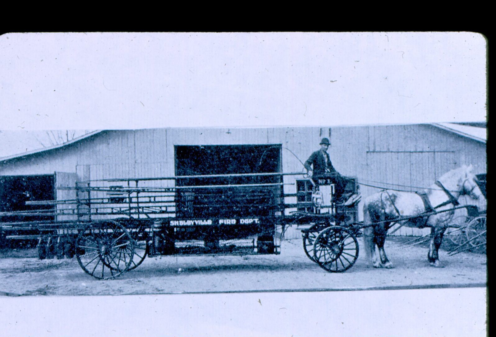 Donation, 07/26/2005. Black and white photographic slide in landscape format. Marked: "ladder wagon/1902"Collection