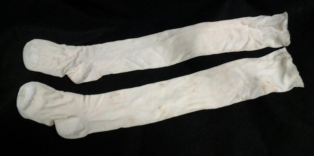 White/cream color knee-high, infants' socks, worn by Marilyn Phares.Collection