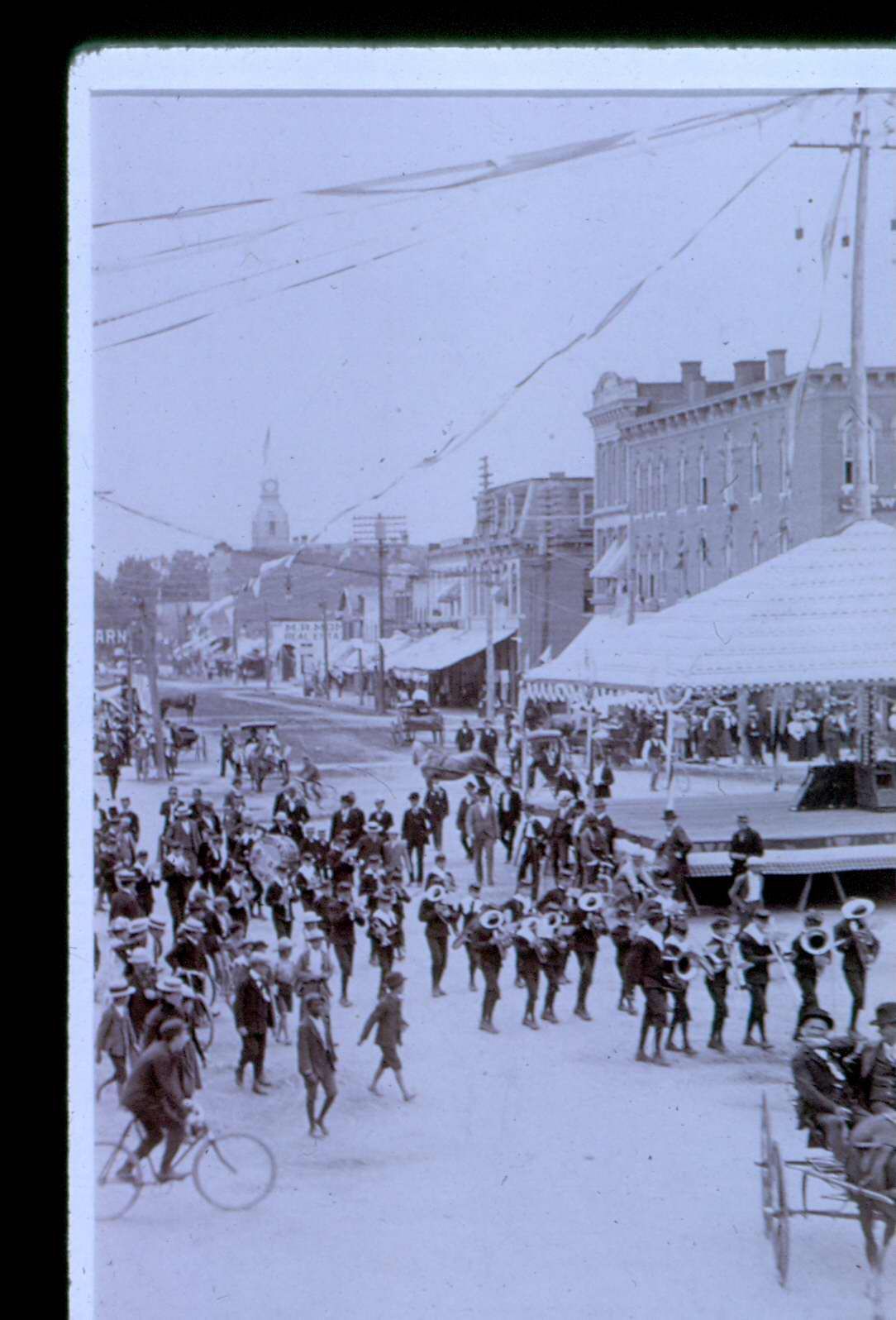 Donation, 07/26/2005. Black and white photographic slide in portrait format. Slide frame is marked: "1899/Looking down S. Harr. from P. S."Collection