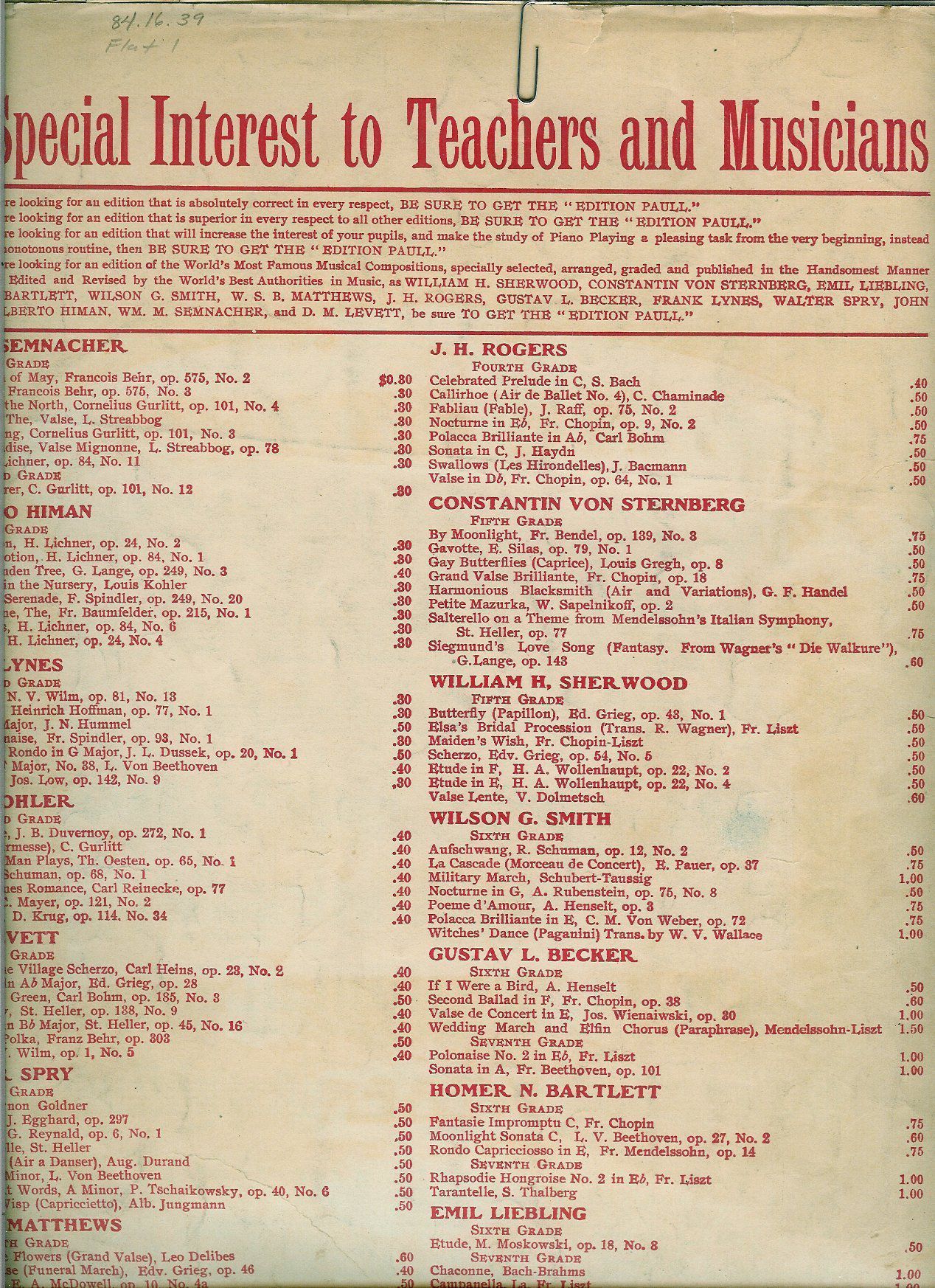a picture of a town on fire, a man in foreground is setting on a balcony playing an instrument, bottom of page is listing for other publishering co. 8 pages total