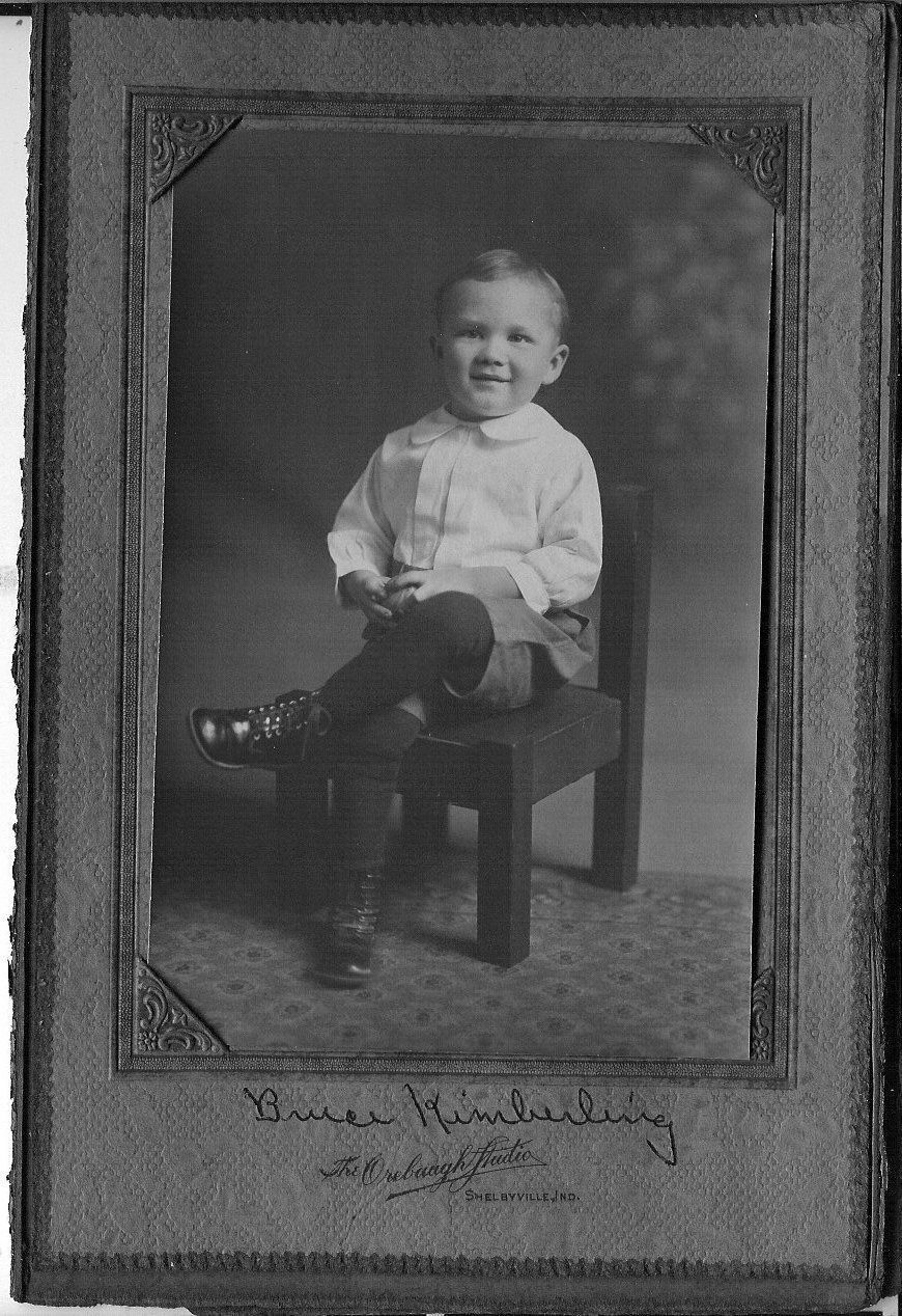 Marked: The Orebaugh Studio, Shelbyville, Indiana. Boy sitting in wooden chair, legs crossed over knee, wearing white shirt and holding a ball. In grey embossed paper folder.Collection