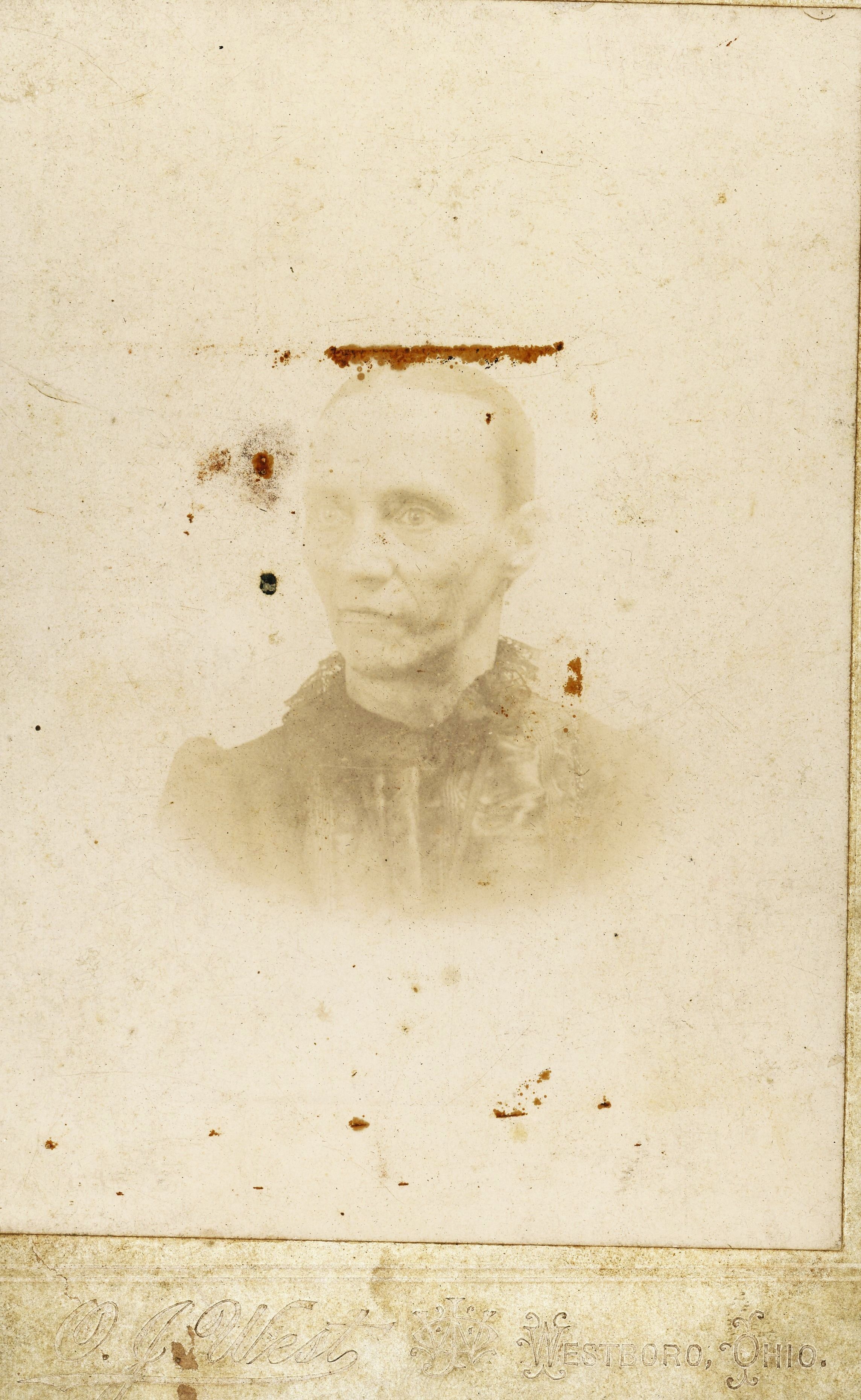 Unidentified Old Woman in a Dark Dress. Hair is pulled back. Picture is damaged across her headCollection