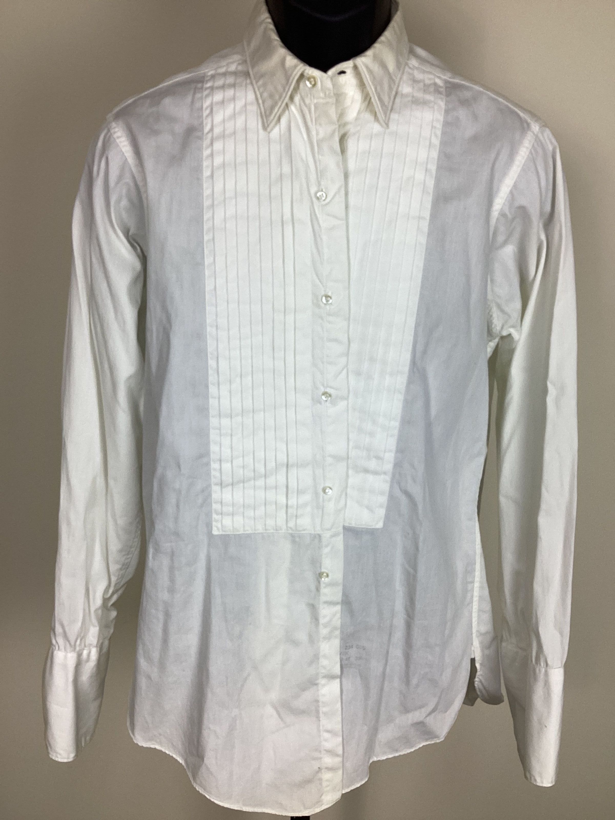 C: Shirt, white, tuxedo pleats down the front, French cuffs. "Custom Collection/