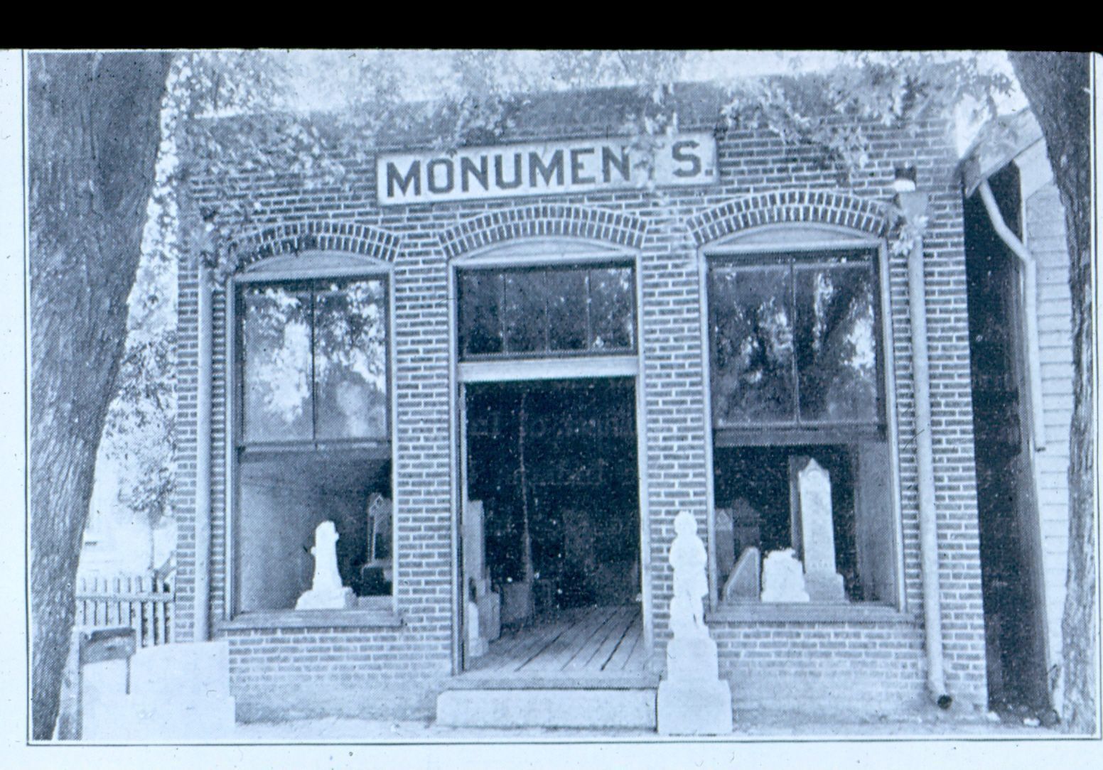 Donation, 07/26/2005. Black and white photographic slide in landscape format. Image is of J. C. Voris's Marble Works on East Washington Street.Collection