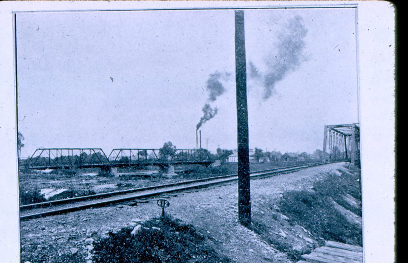 Donation, 07/26/2005. Black and white photographic slide in landscape format. Slide frame marked: "Wagon Bridge/1902."Collection