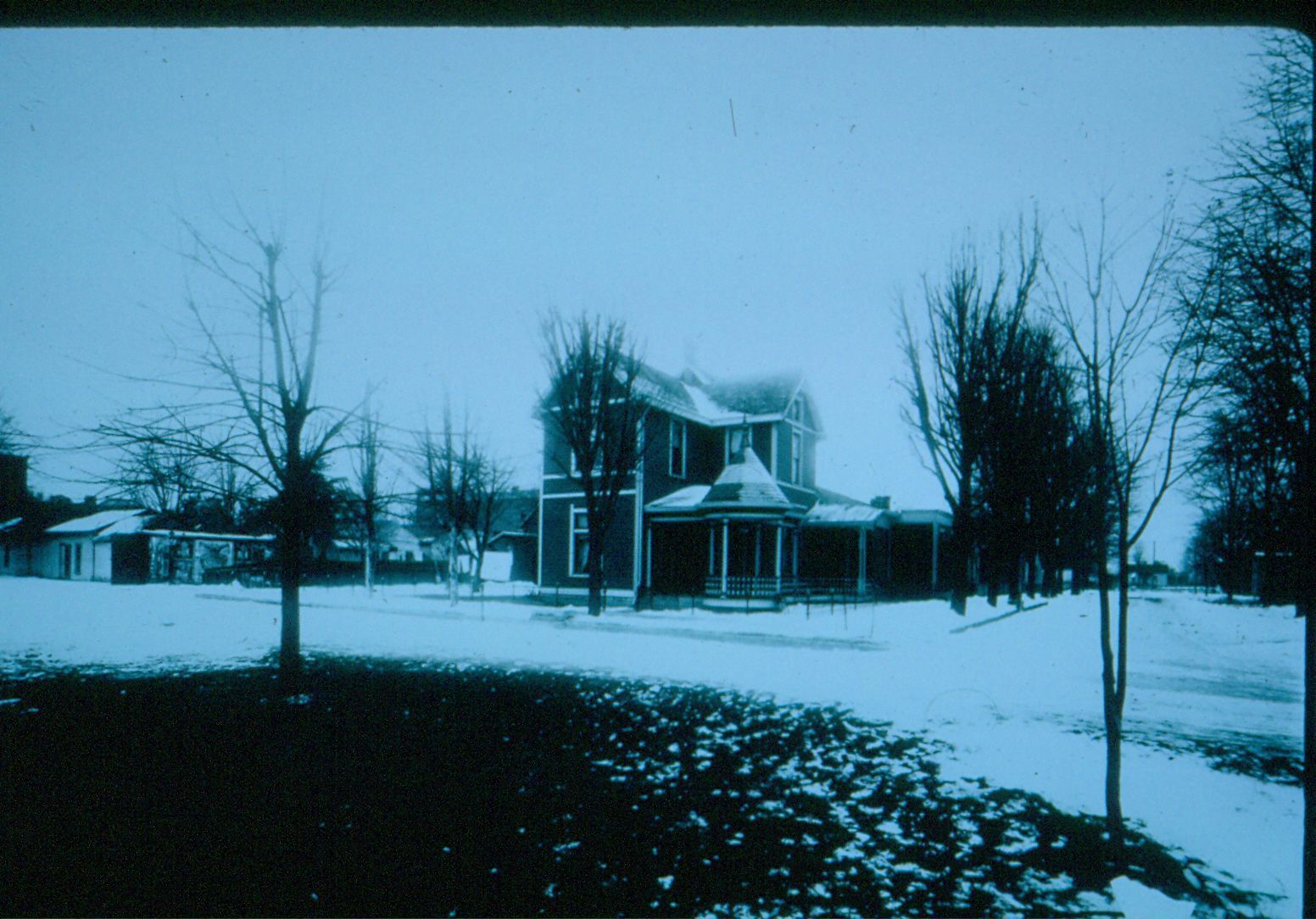 Black and white photographic slide in landscape format. Slide frame is marked: "Waldron House/where nursing home is now."Collection