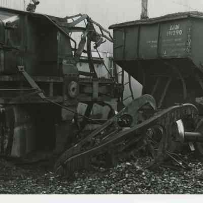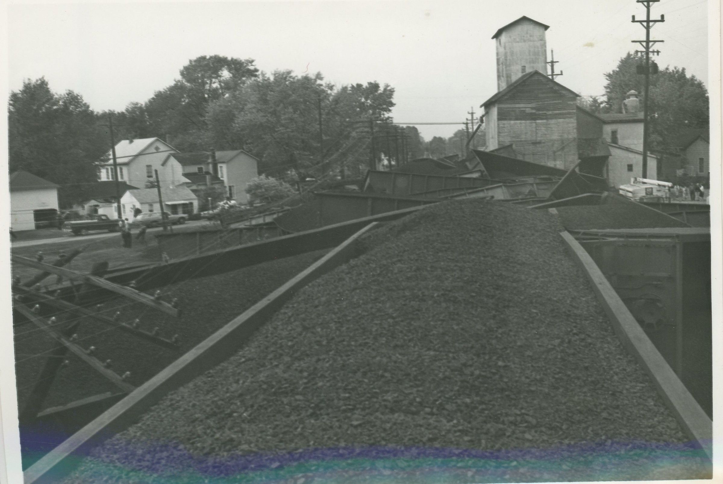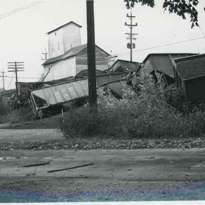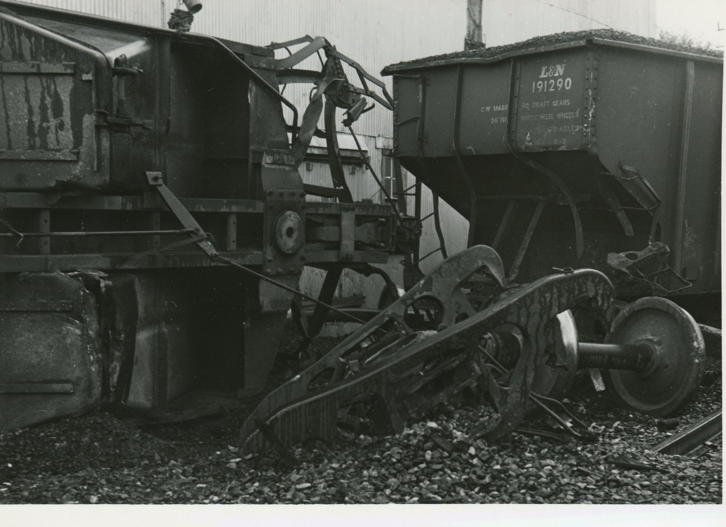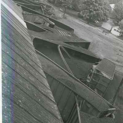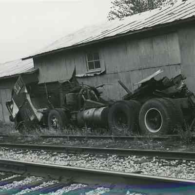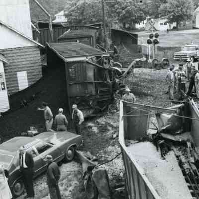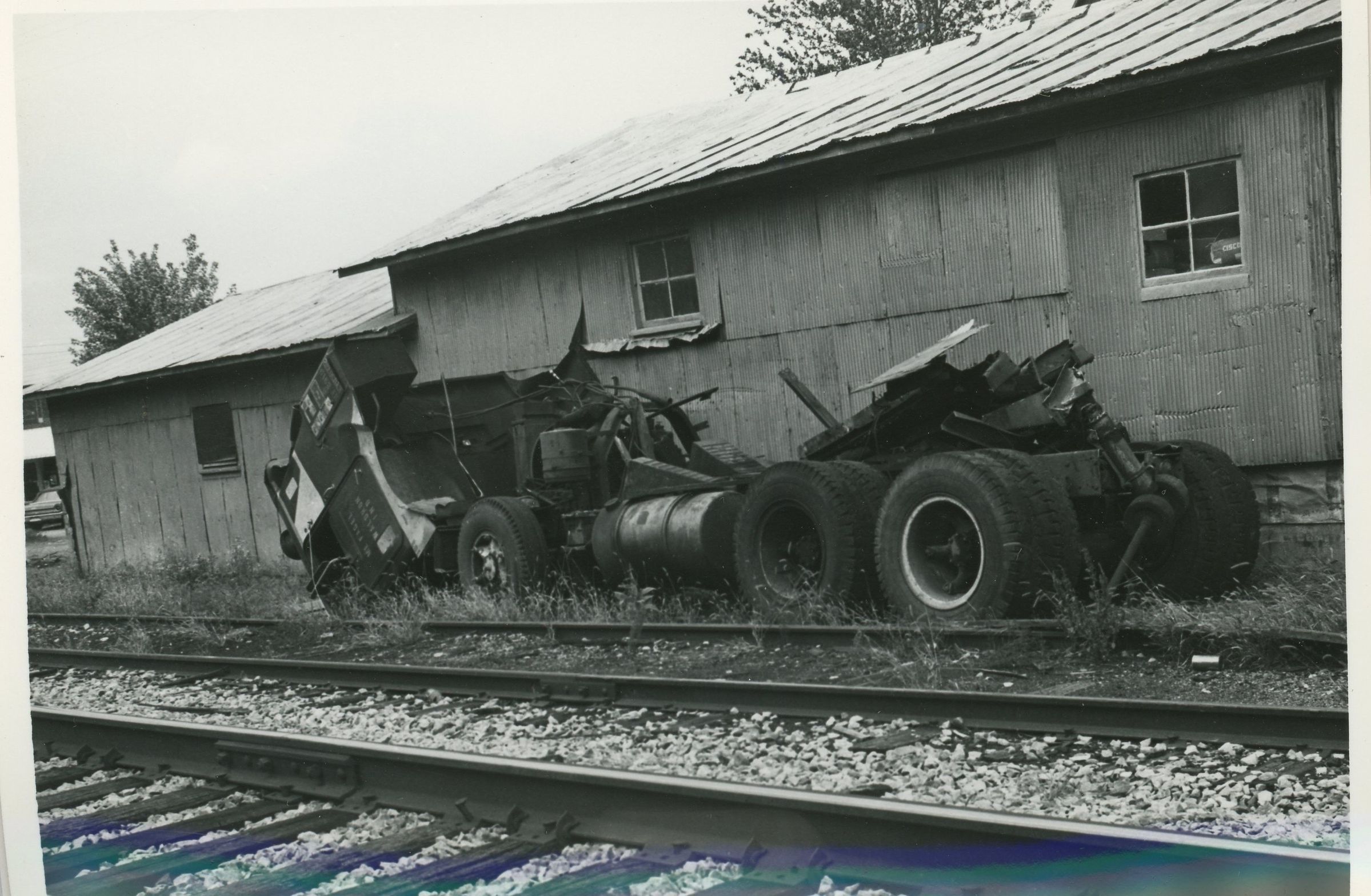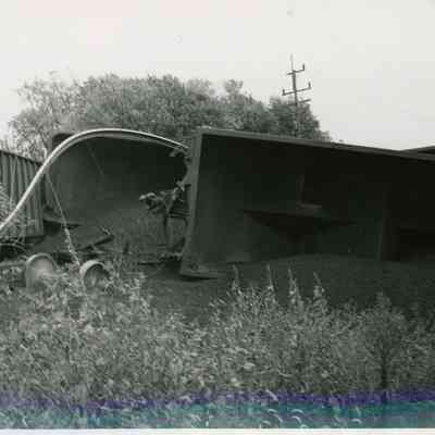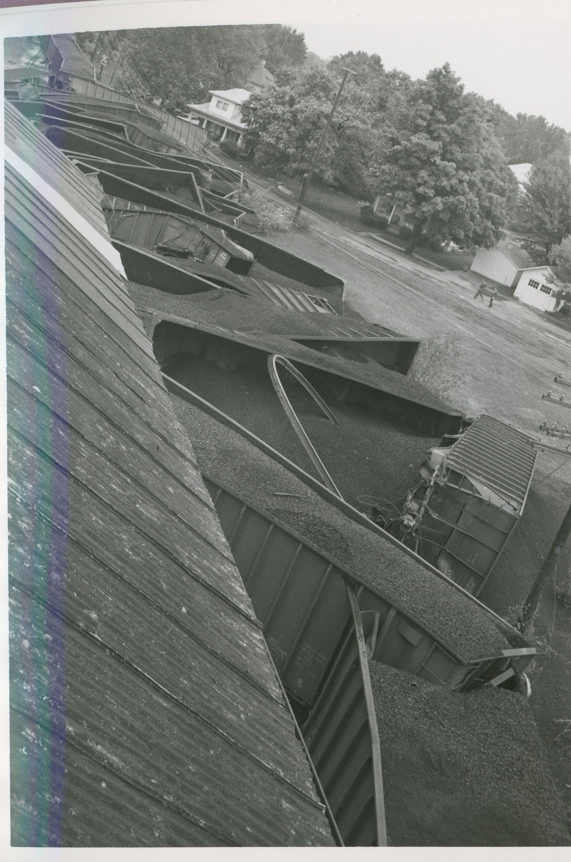 Purple booklet of the Oct 8, 1970 train wreck in Waldron, IND, which occurred at 2:10 PM. Set of 8 images stapled together in a construction paper booklet. Writing in black pen on the back. Shelbyville New coverage on Oct 9th.Photograph Details