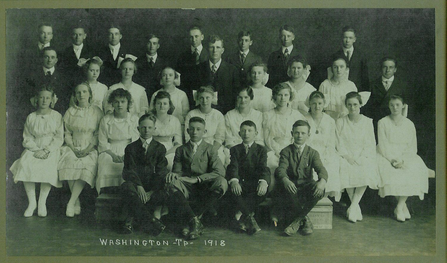 Washington Township Class of 1918. Group photo of 31 people. Labeled: "Washington-Tp-1918" F.I.C. 08/2004.Collection