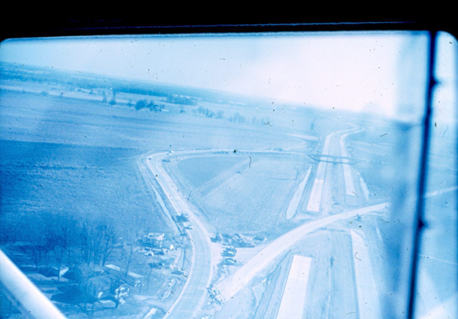 Black and white photographic slide in landscape format. Slide frame is marked: "Arial view/