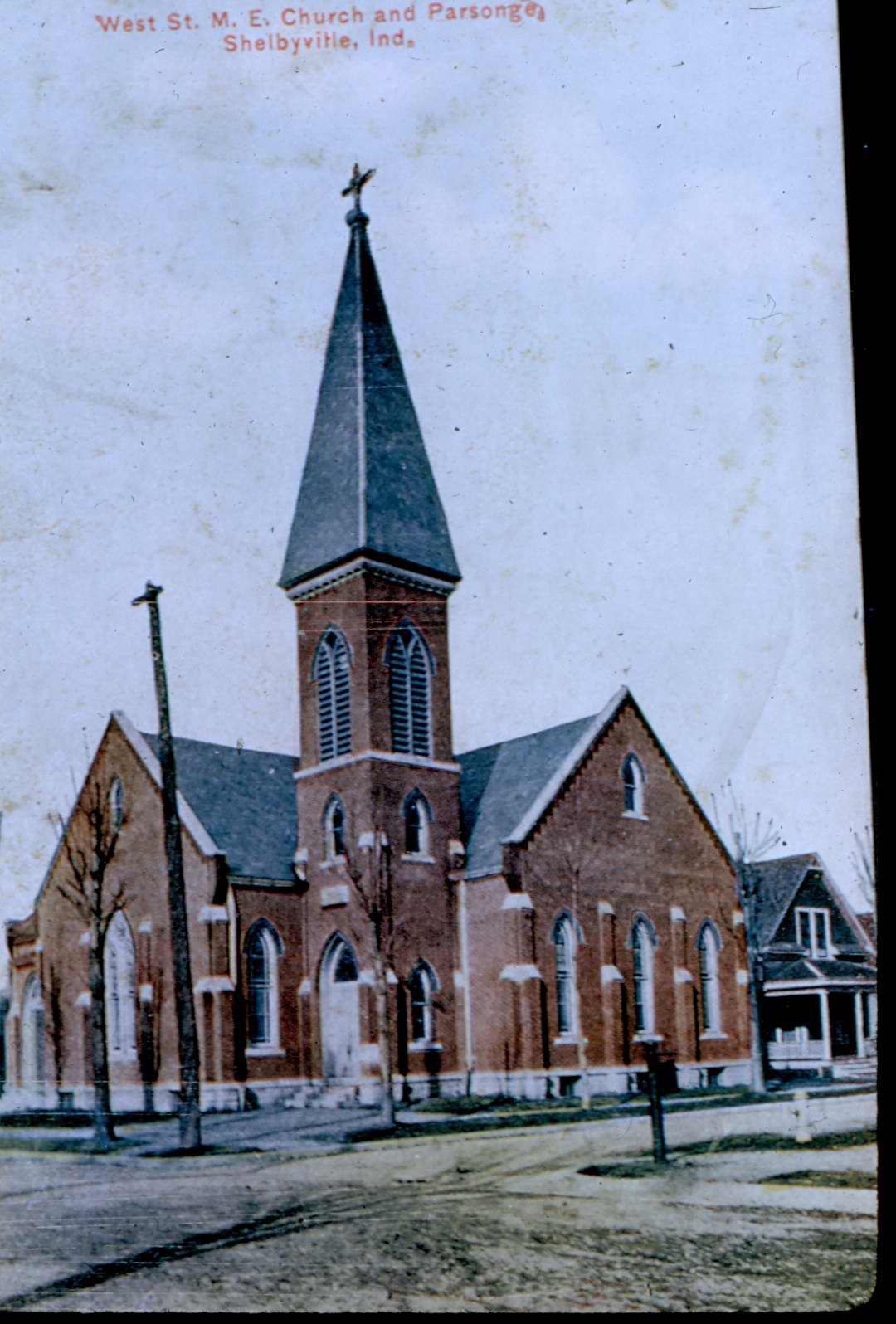 Color photographic slide in portrait format. Slide frame is marked: "West St. Methodist Church."Collection