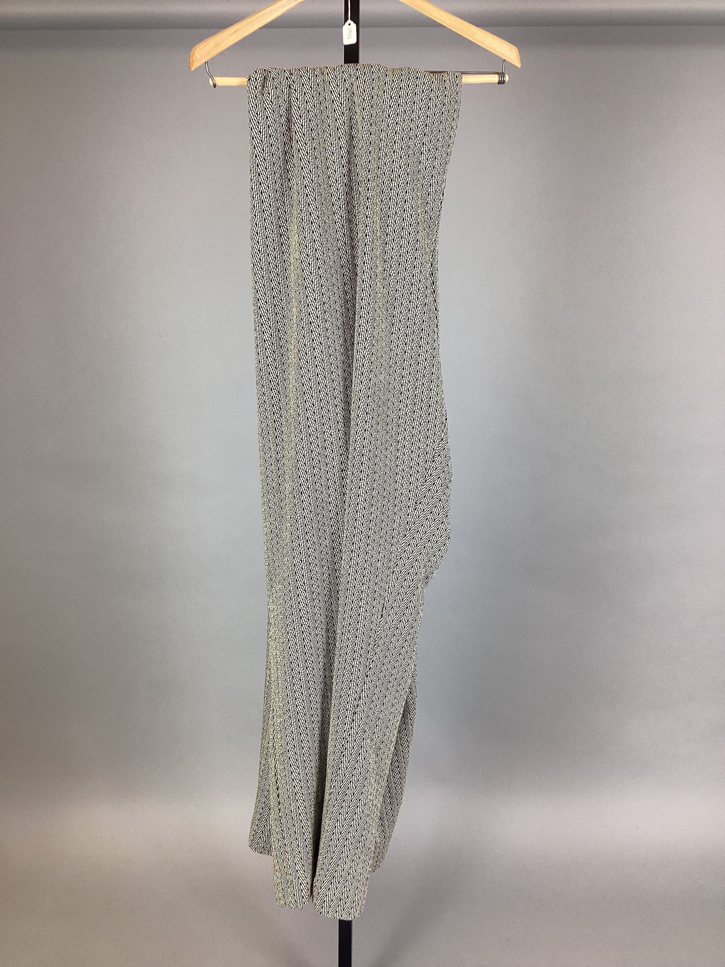 A pair of black and white tweed pattern pants. The pants are hand-made with an elastic waistband.Acquisition