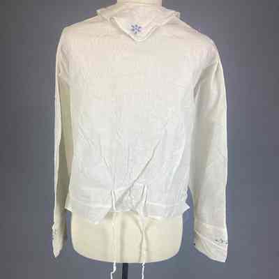 Women’s White Cotton Blouse w/ Blue EmbroideryDescription
