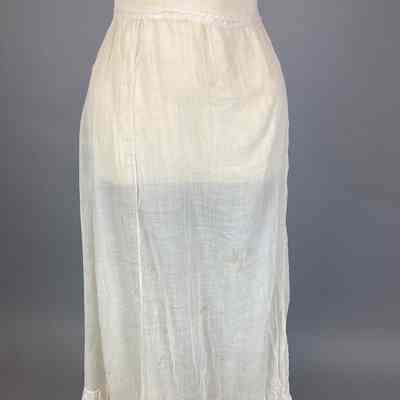 This undergarment is part of a lawn dress ensemble worn by Marsh. Marsh was the daughter of an Irish immigrant and raised near Boggstown. She was a life-long resident of Shelby County.