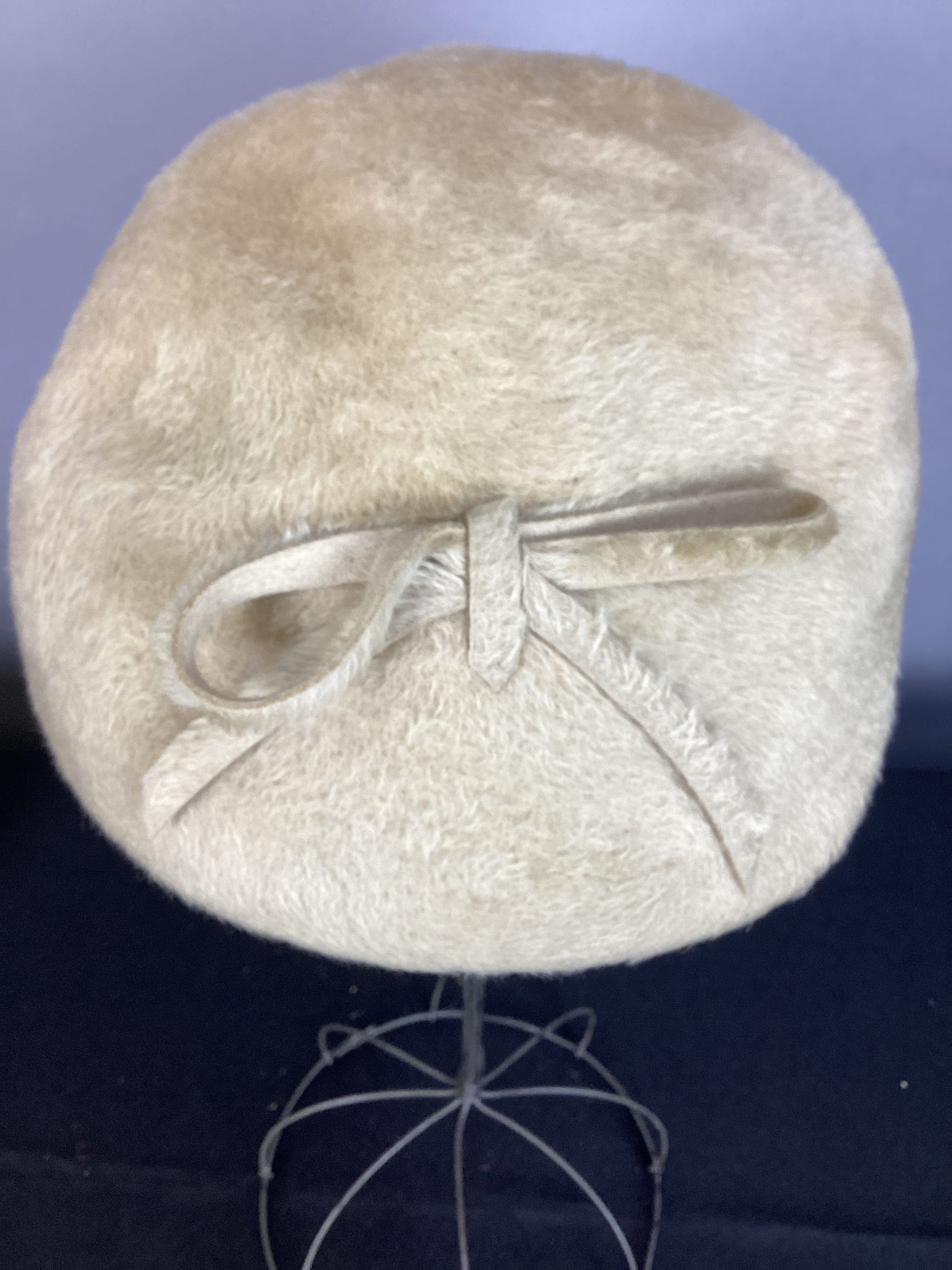 Tam Style; made of beige fur felt; has a bow to the front.Use