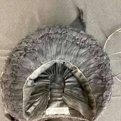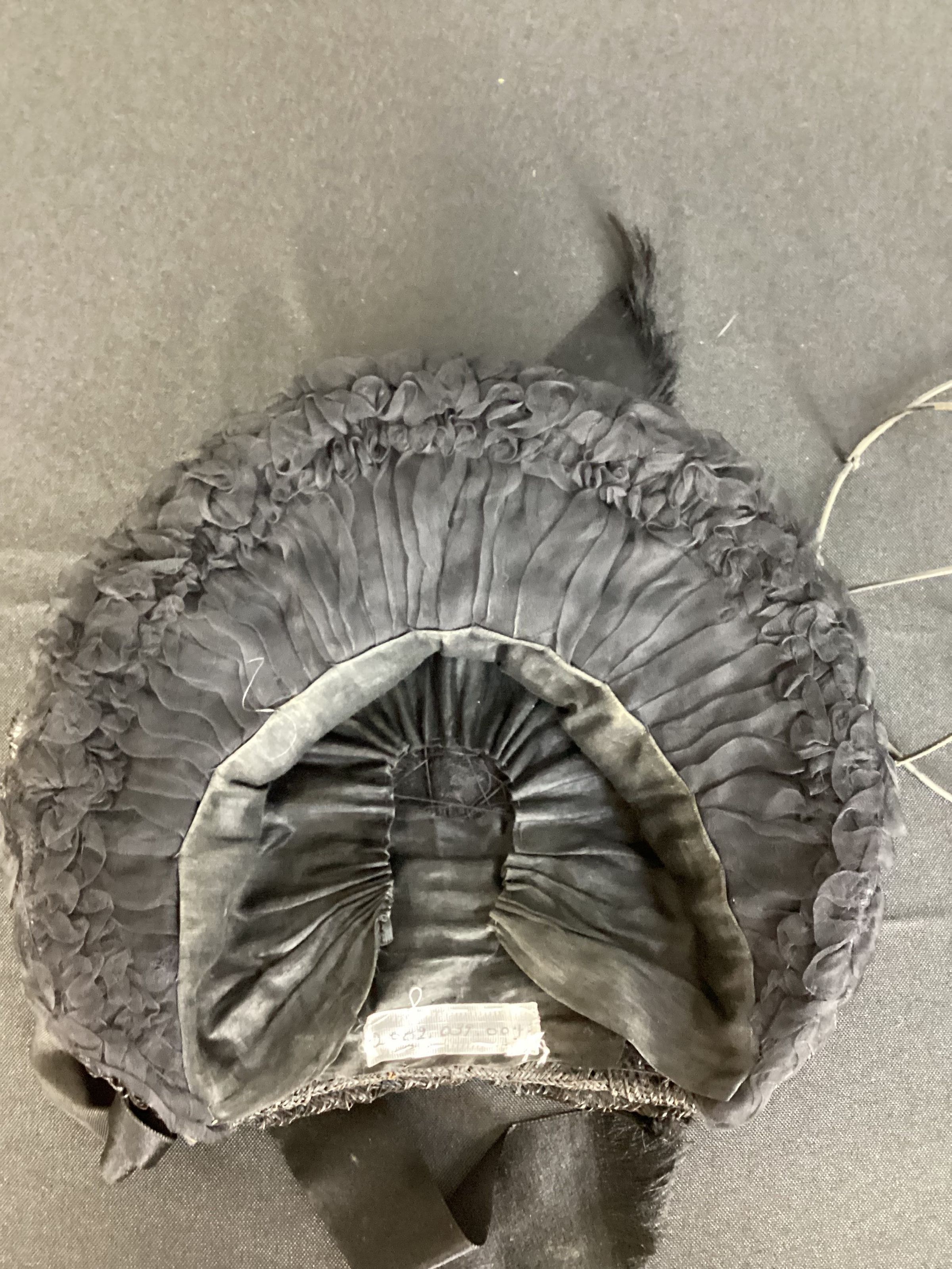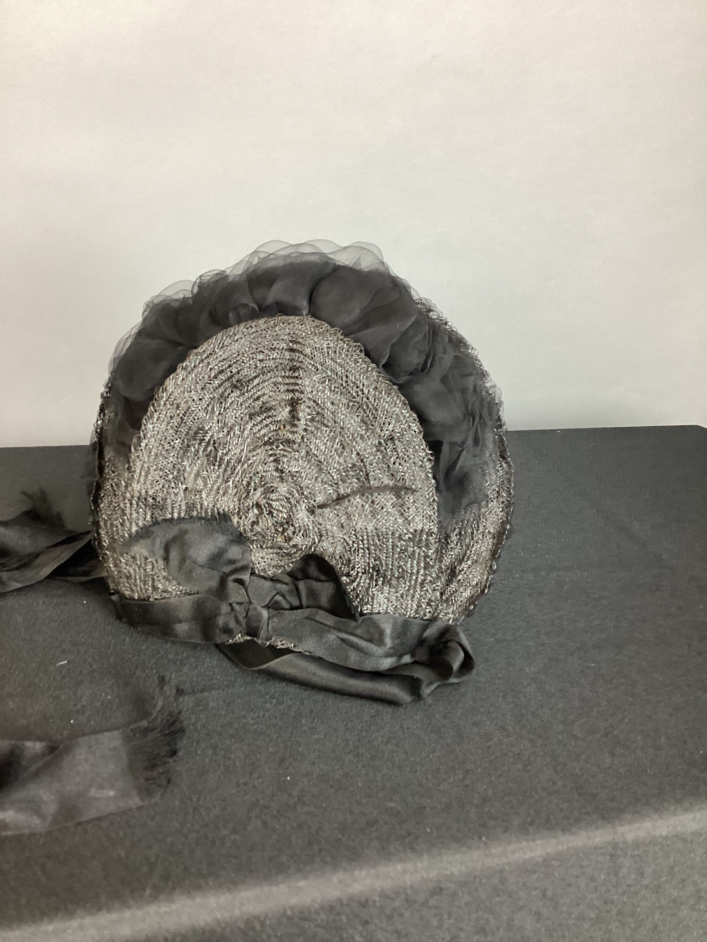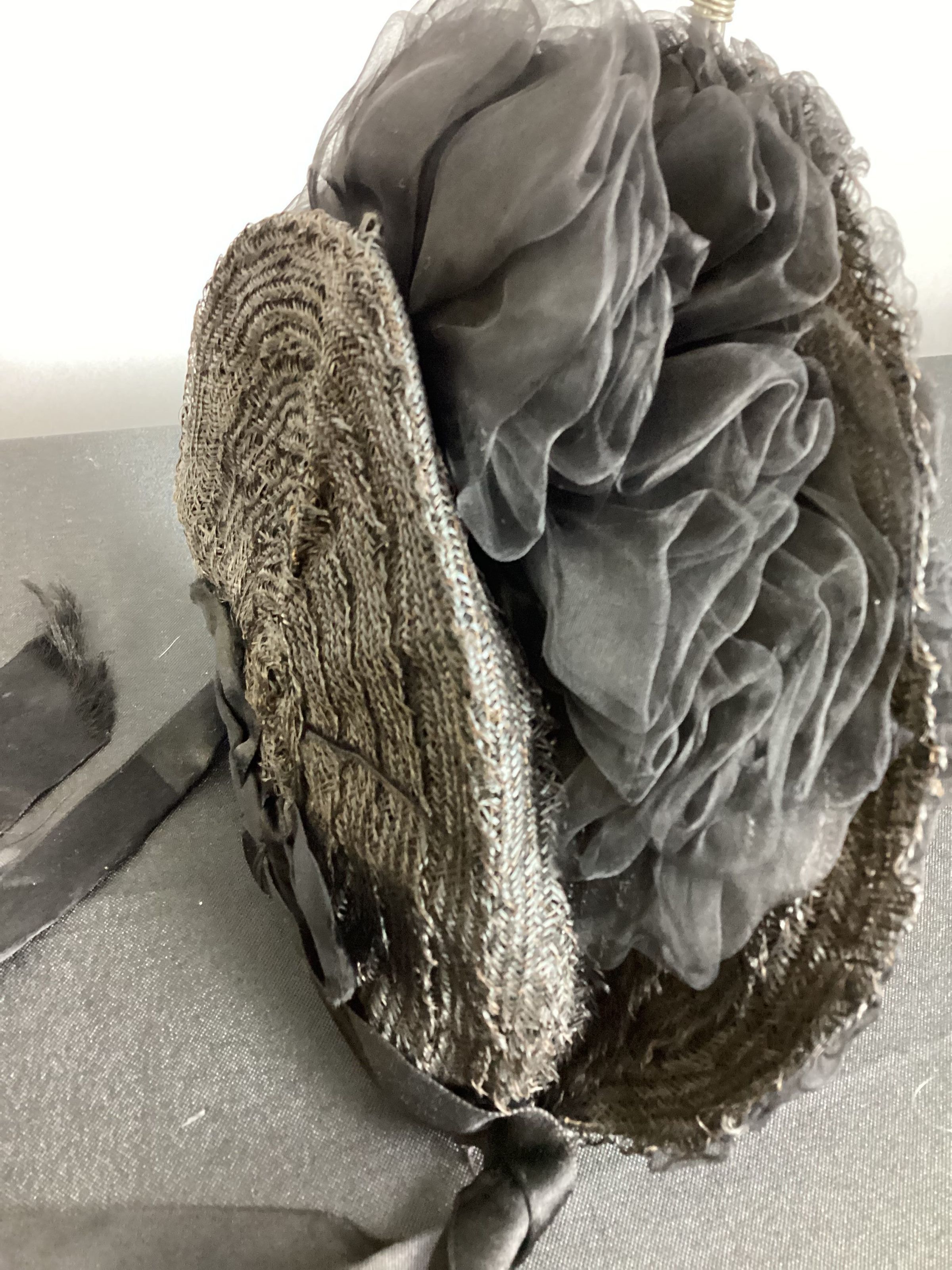 Black straw brim & crown. Satin ribbon trim & ties.Use