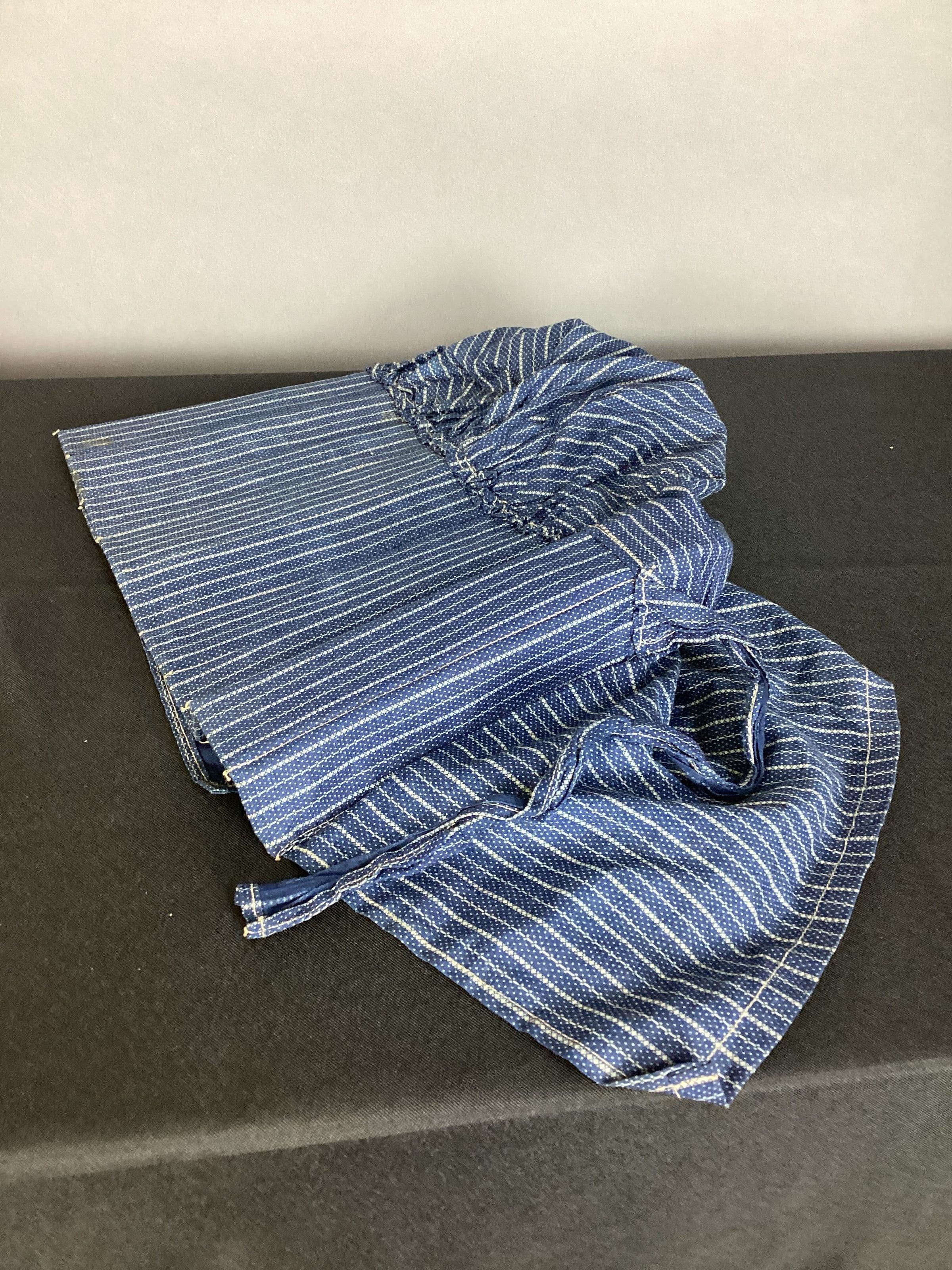 Sunbonnet, slat brim, blue and white striped cotton; machine stitched; self ties.Collection