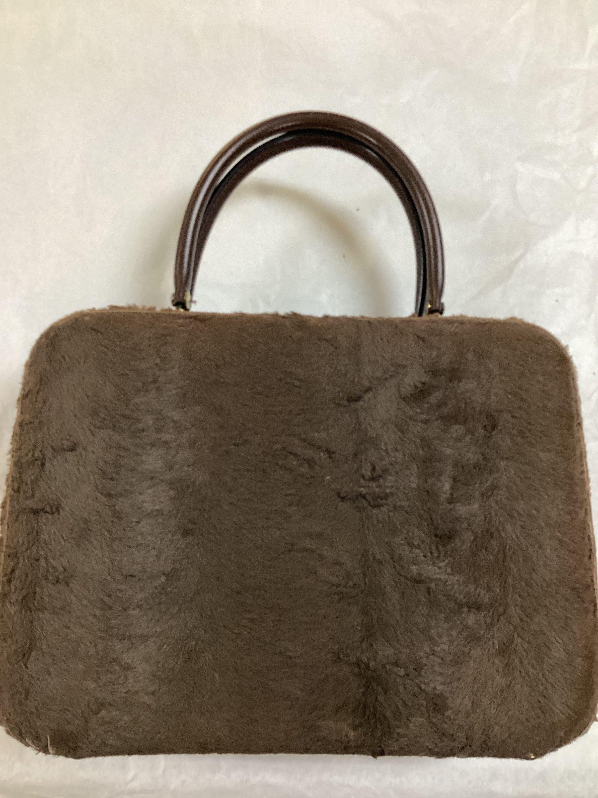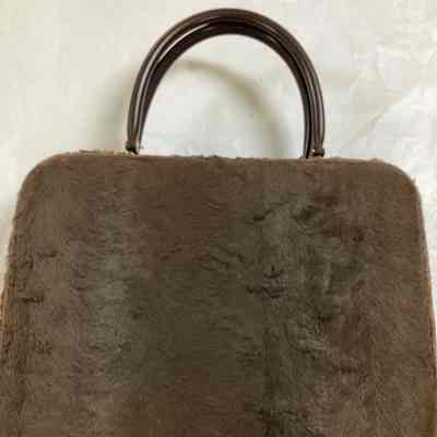 B. Brown fur purse, rectangular boxy style,2 handlesAcquisition