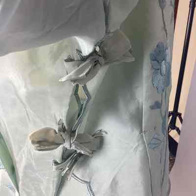 Women's Green Dress w/ Blue Floral EmbroideryDescription