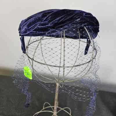 Women's Navy Velvet Hat w/ Net VeilDescription