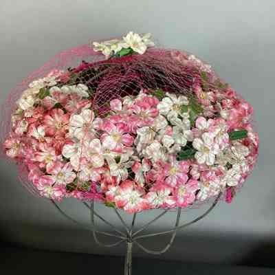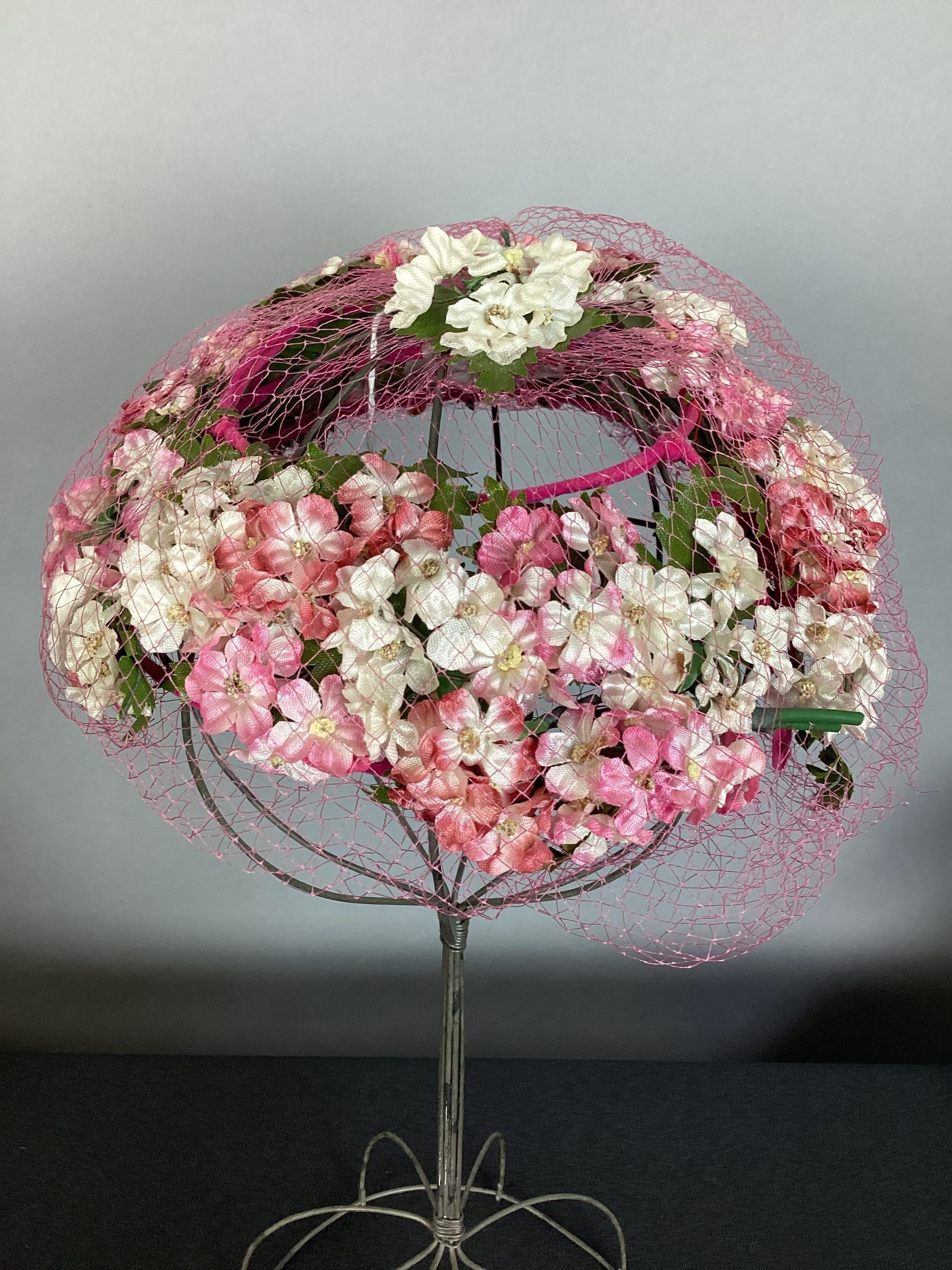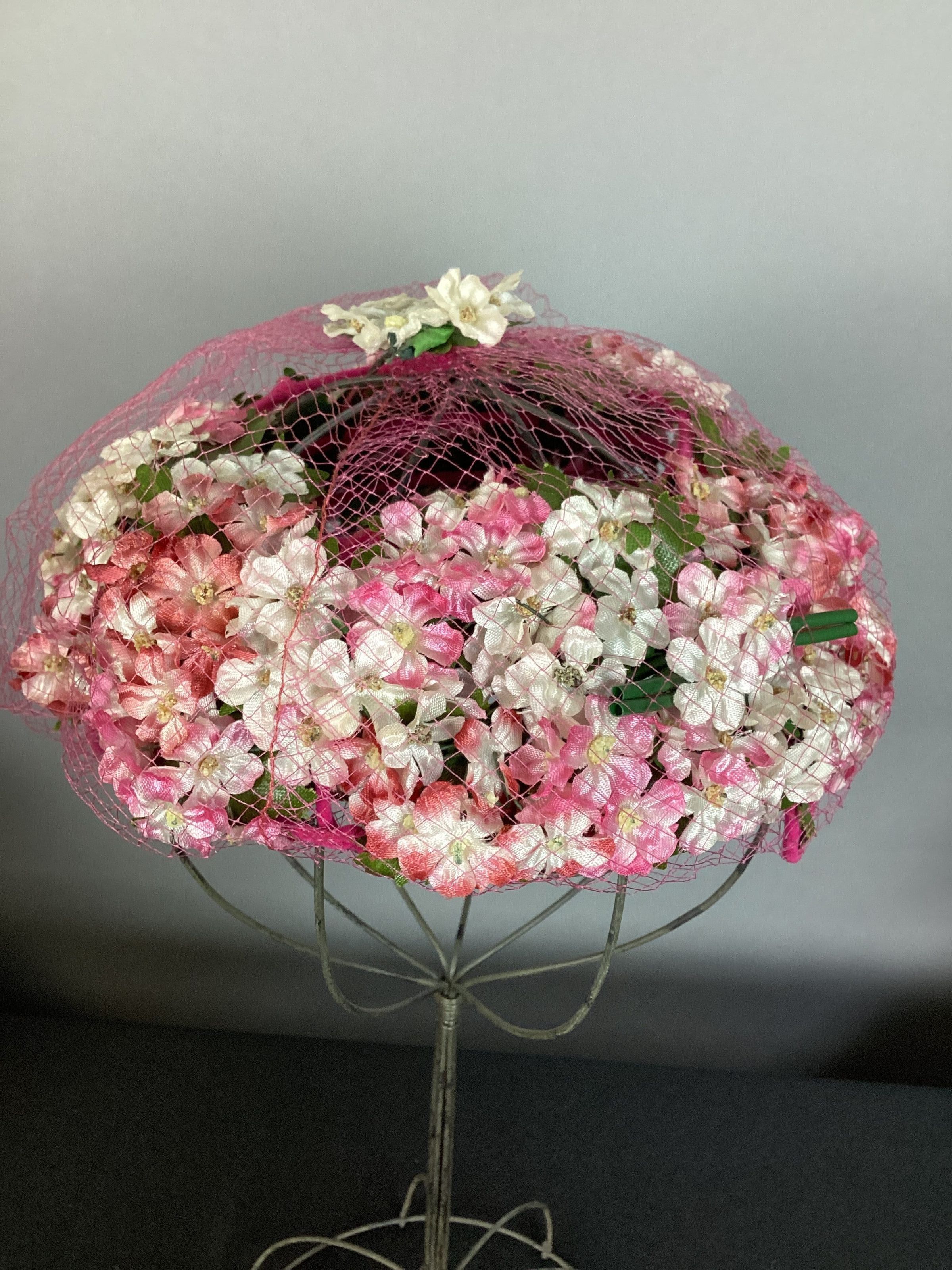 Women's Pink Floral Wire Hat w/ NettingDescription