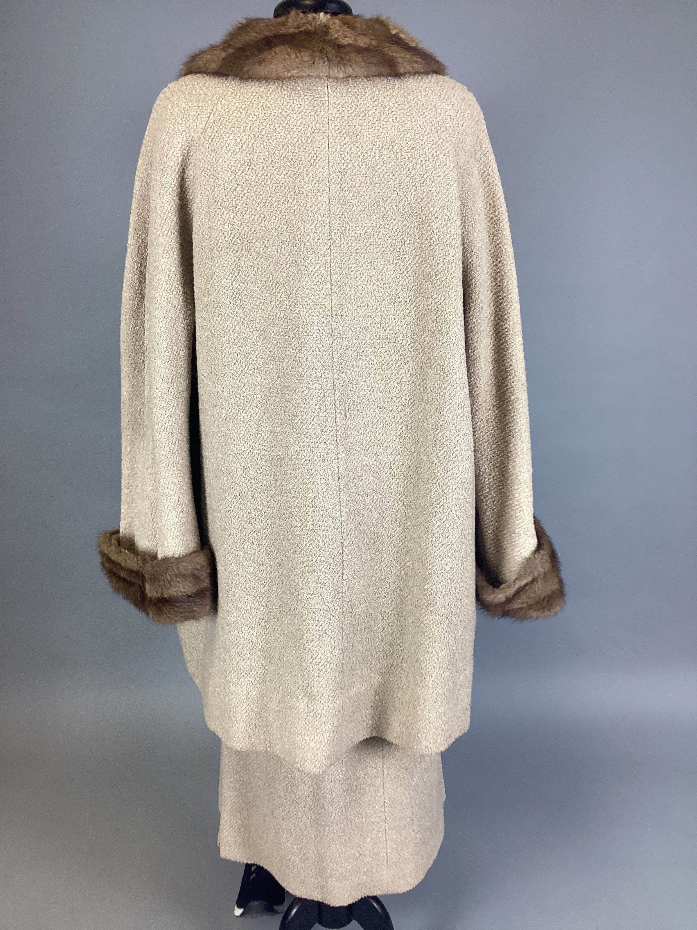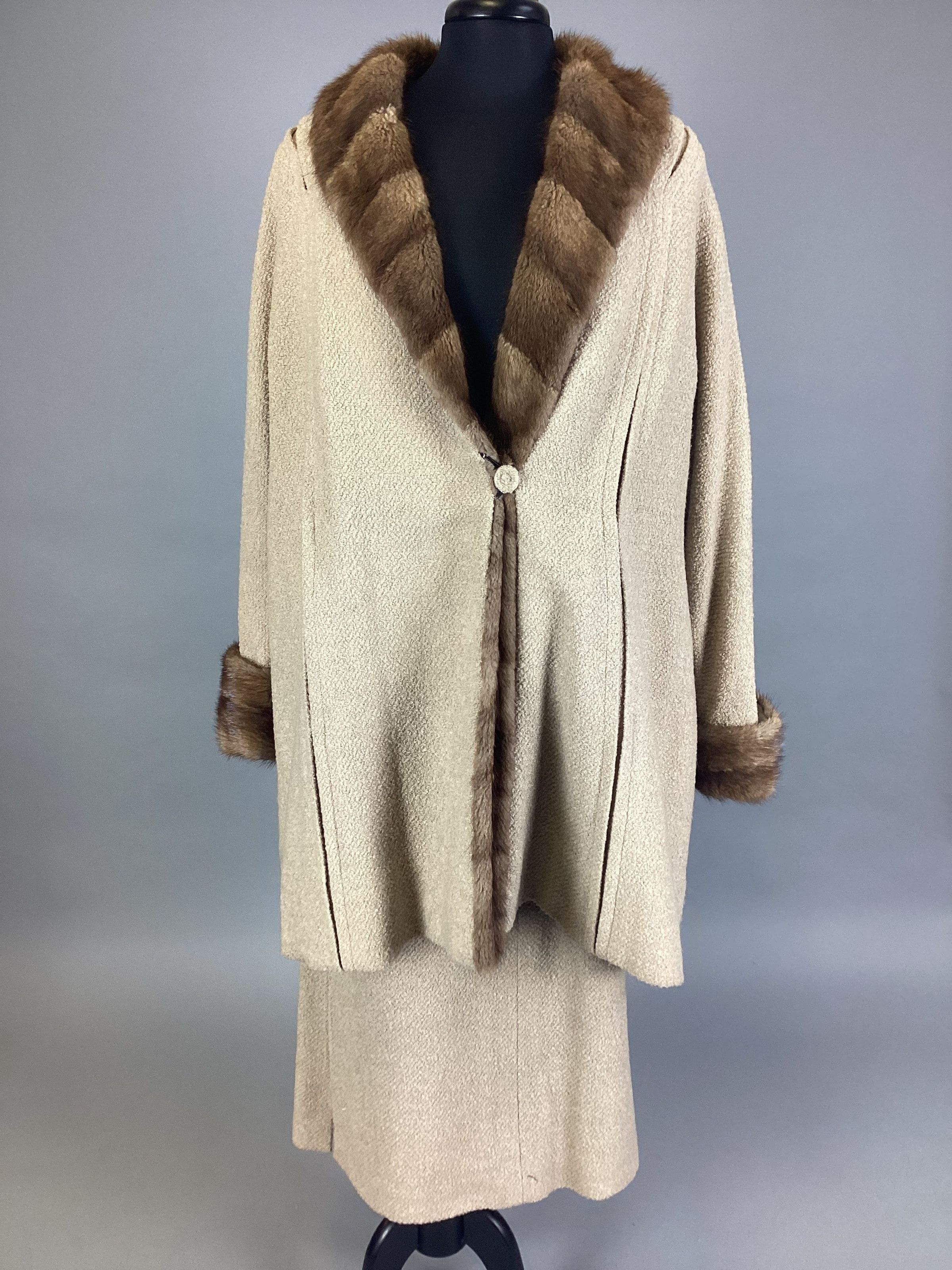 Women's Tan Wool & Mink Fur Coat + SkirtDescription